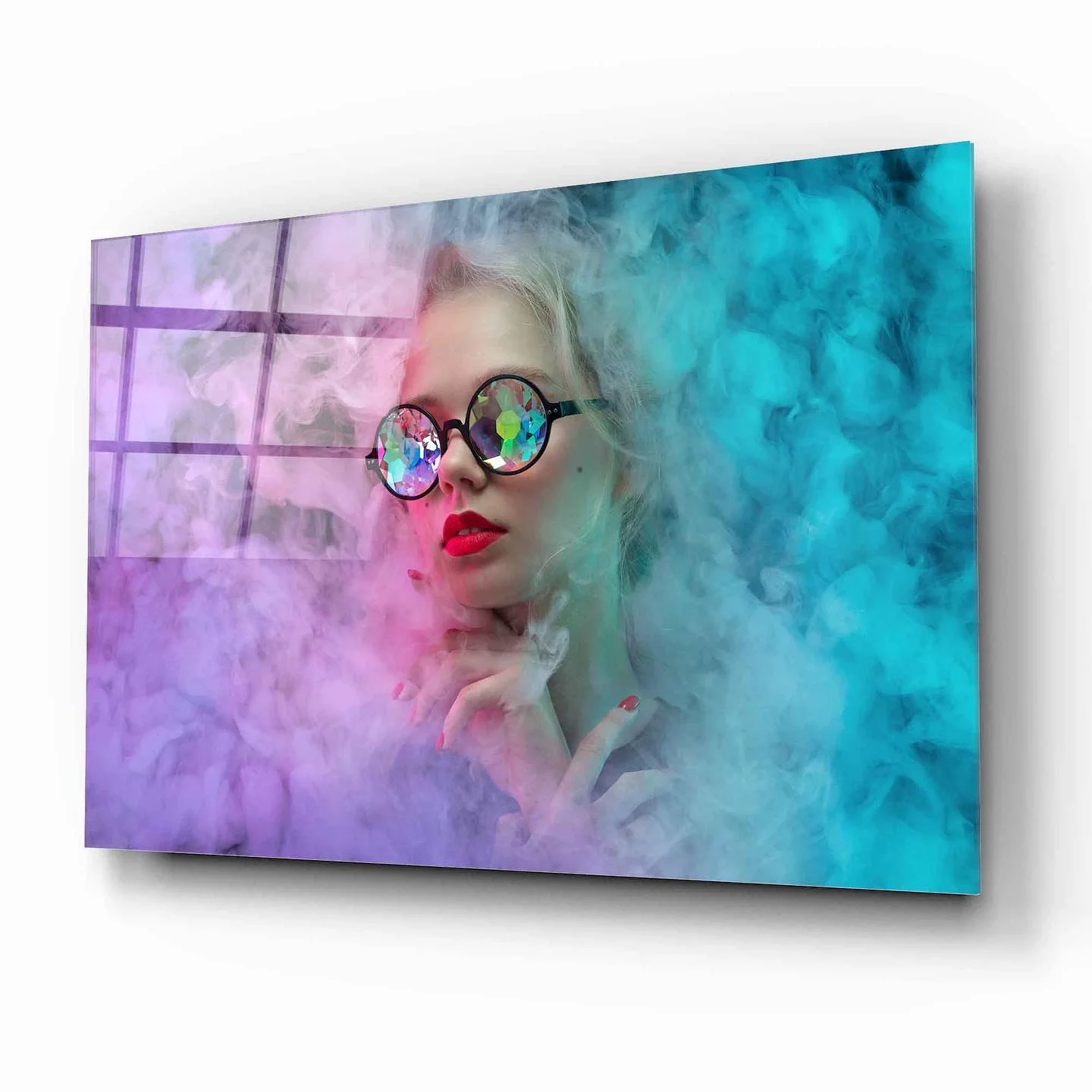 Artistic Glass Painting of Lady Seeing in Colors