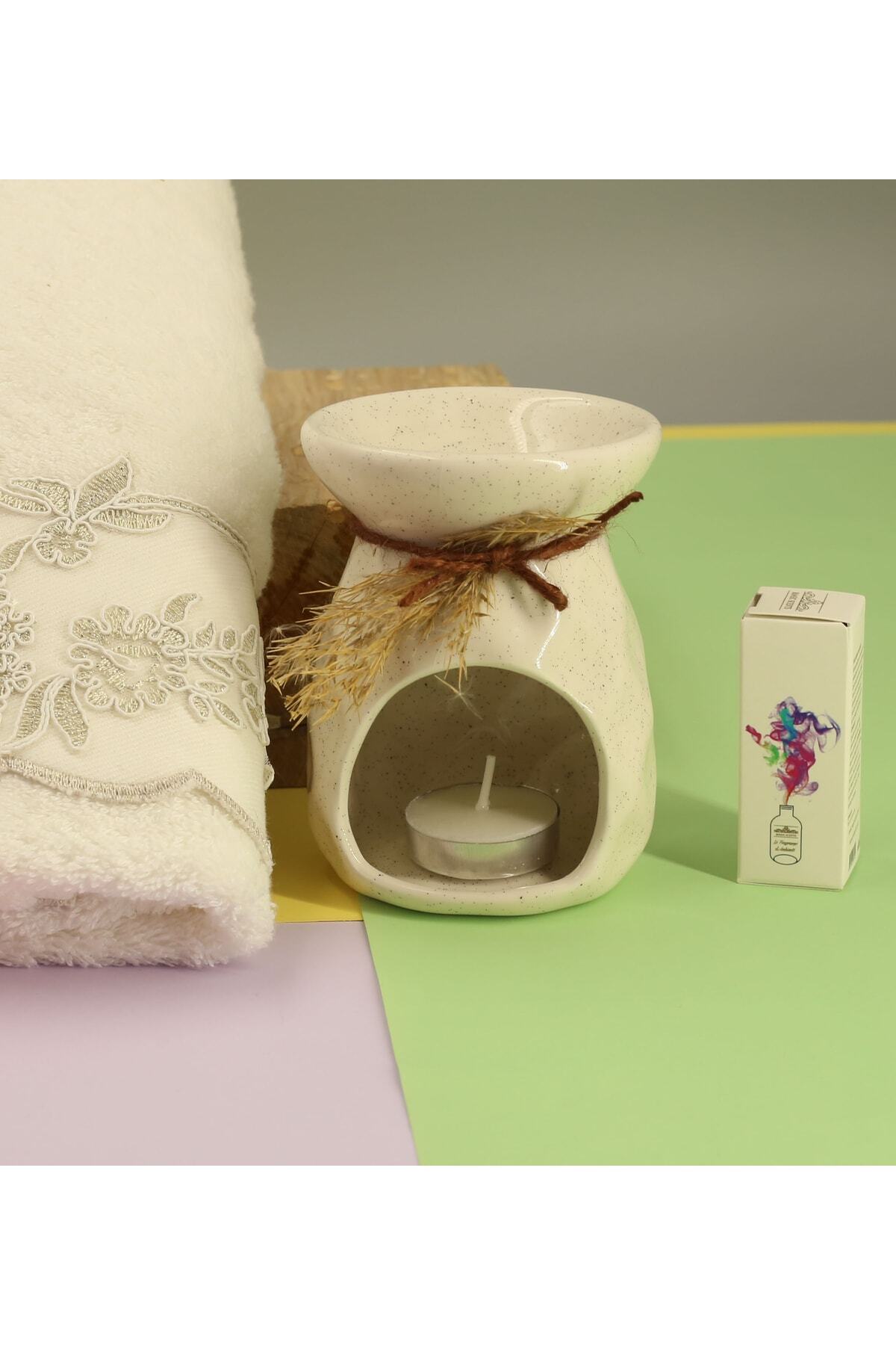 PRODUCT CONTENT Pineapple Design Cream Censer Thanks to the tealight candle placed on the underside of the incense burner made of glazed ceramic, the incense oils placed in the upper chamber slowly heat up and help to change the atmosphere of the environment with the candle light emitted from the motifs on the incense burner. Produced to be resistant to high temperatures, the Pineapple Ceramic Incense Burner can be used in all kinds of decor with its stylish design. *Censer dimensions: 11 cm x .5 cm. Censer Essence is used to give a pleasant scent to the environment. Add a few drops of the product into the water you added to the censer bowl. You can spread the scent into the environment by lighting a tealight candle at the bottom of the censer. *Pattern: Sandalwood, Mint, Orange * Size: 10 ml Collection *Theme: Natural *Product Composition: Essential Fragrance OilMaterial **One of the Sandalwood, Mint, Orange scents will be sent depending on stock availability. Pupilla Bamboo Towel *Pupilla bamboo towel, you can use our bamboo towel collection in a very healthy way in your bathroom, thanks to its fast drying and high absorption properties. Bamboo is a fiber made from natural and renewable resources. Thanks to the special structure of these environmentally friendly, chemical-free bamboo fibers, our towels are extra soft and have high water absorbency. It offers healthy and long-lasting use with its bright colors inspired by nature and natural fiber content. *Product Composition: 40% Bamboo 60% Cotton *Size: 50 It is used to remove blemishes on the skin and face. It is a good moisturizer used for hair and skin care. It maintains moisture balance while cleansing your skin.