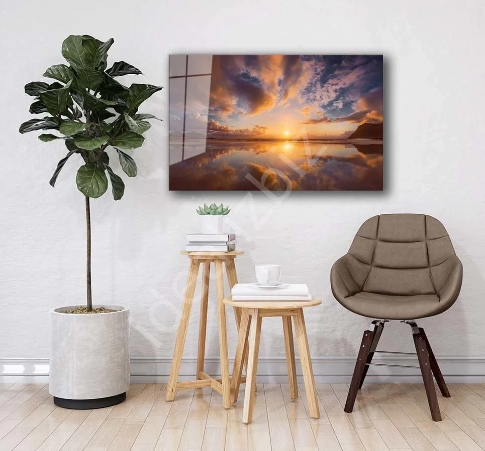 The printing of the glass painting is in the form of direct printing on the back surface of the glass. In this way, the printing remains behind the glass and you will see the high printing quality with the elegance of the glass.