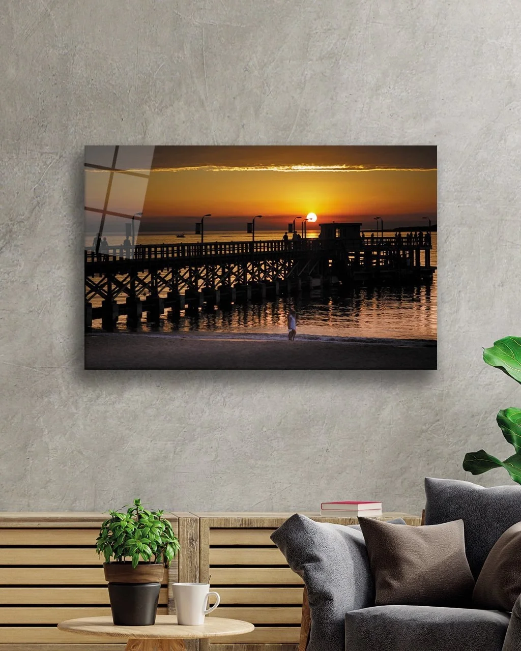 Pier Sunset Evening Sun Glass Painting