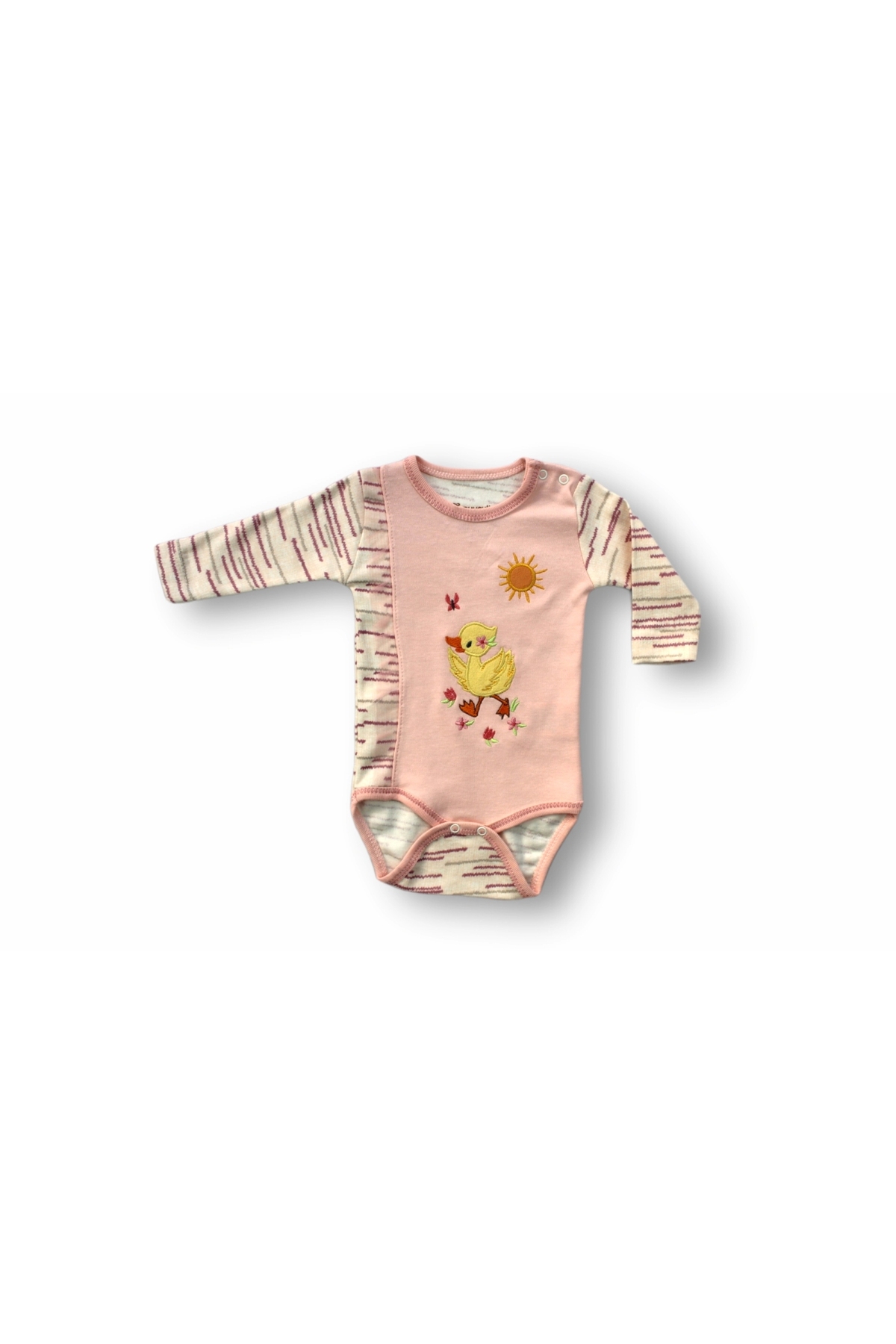 3-6 6-9 9-12 Months 3-Piece Baby Girl Set with Fancy Duck Embroidery Hat and Long Sleeve Bodysuit