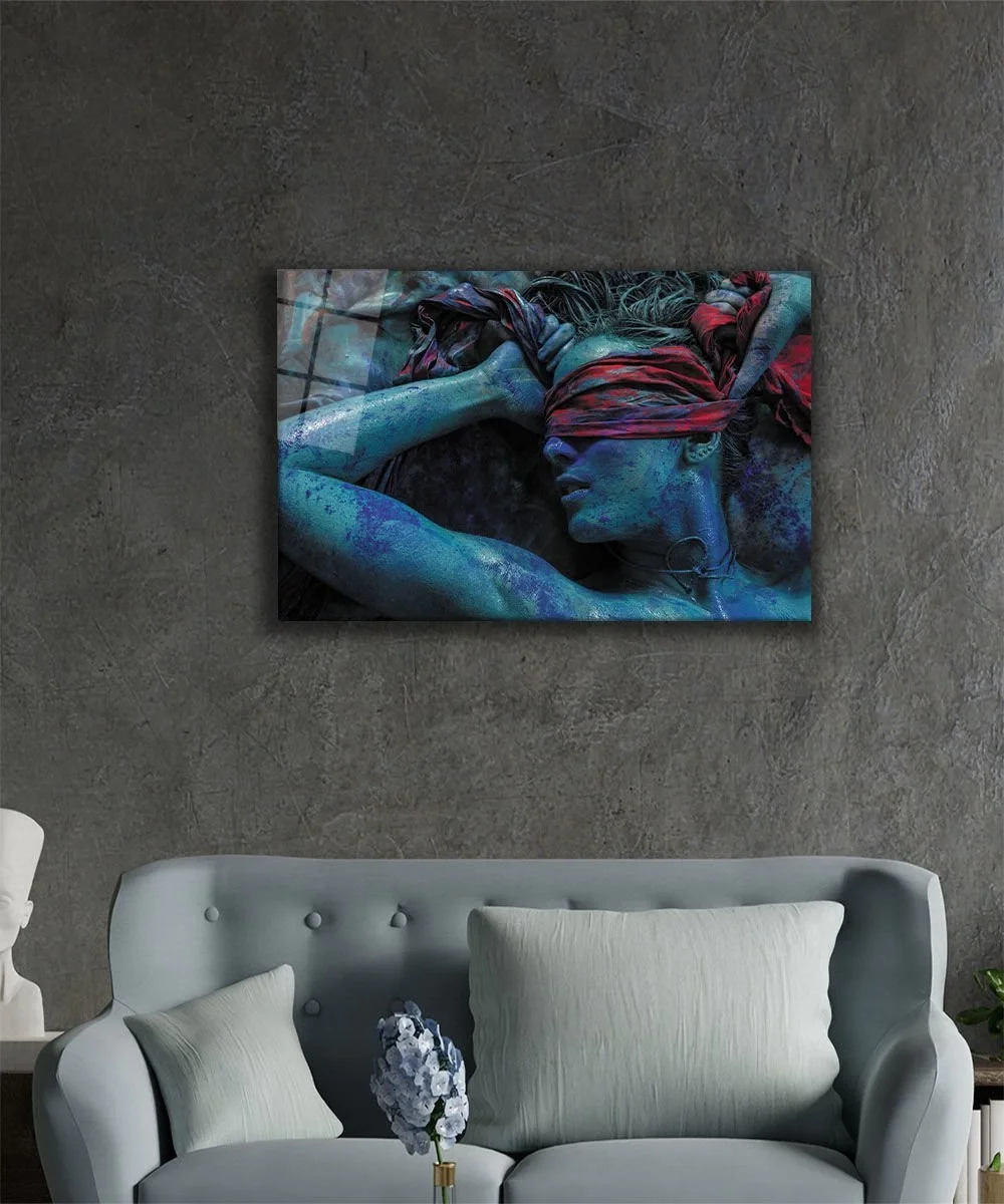 TEKNOO- Blue Painted Blindfolded Woman Glass Painting