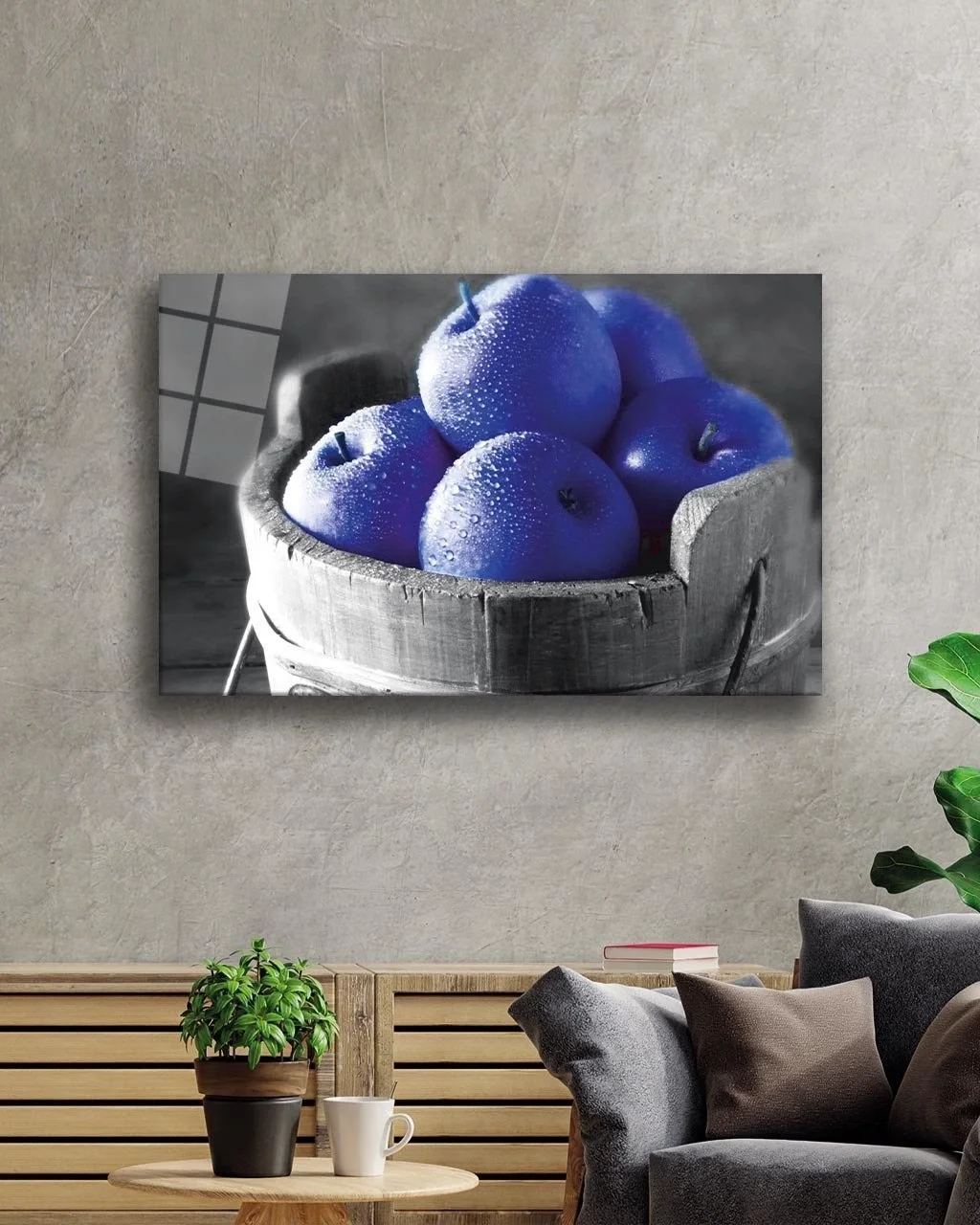 TEKNOO- Blue Apples Glass Painting Blue Apples Wall Hanging