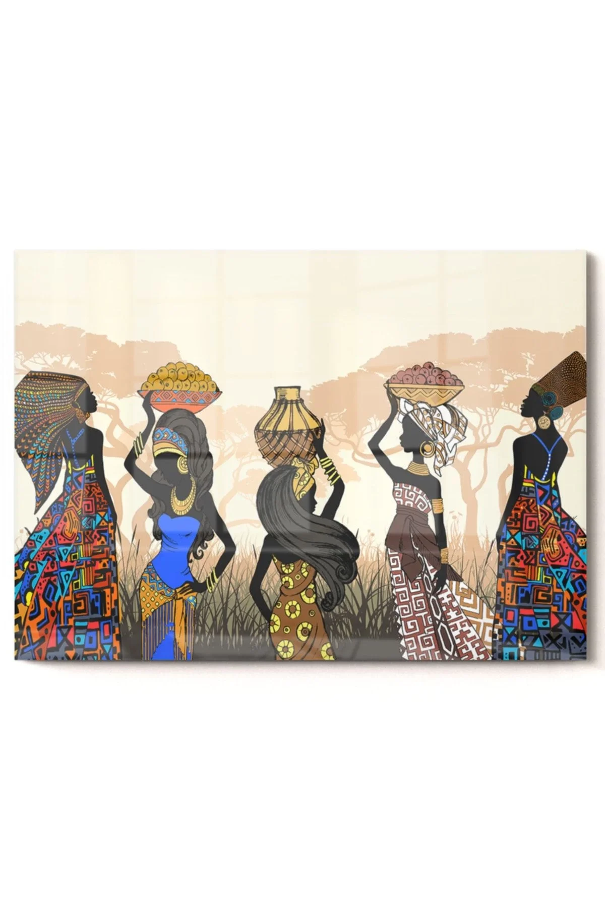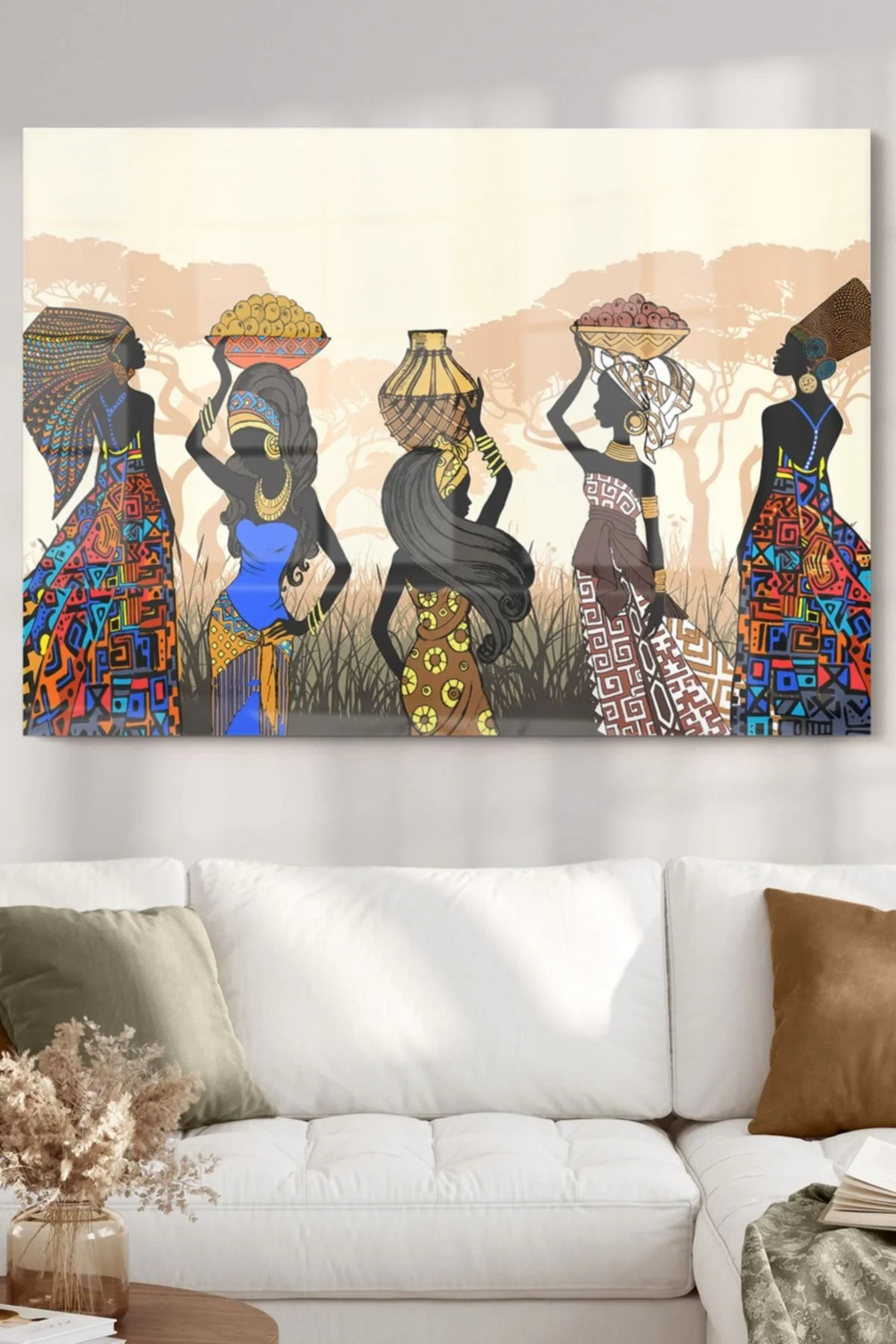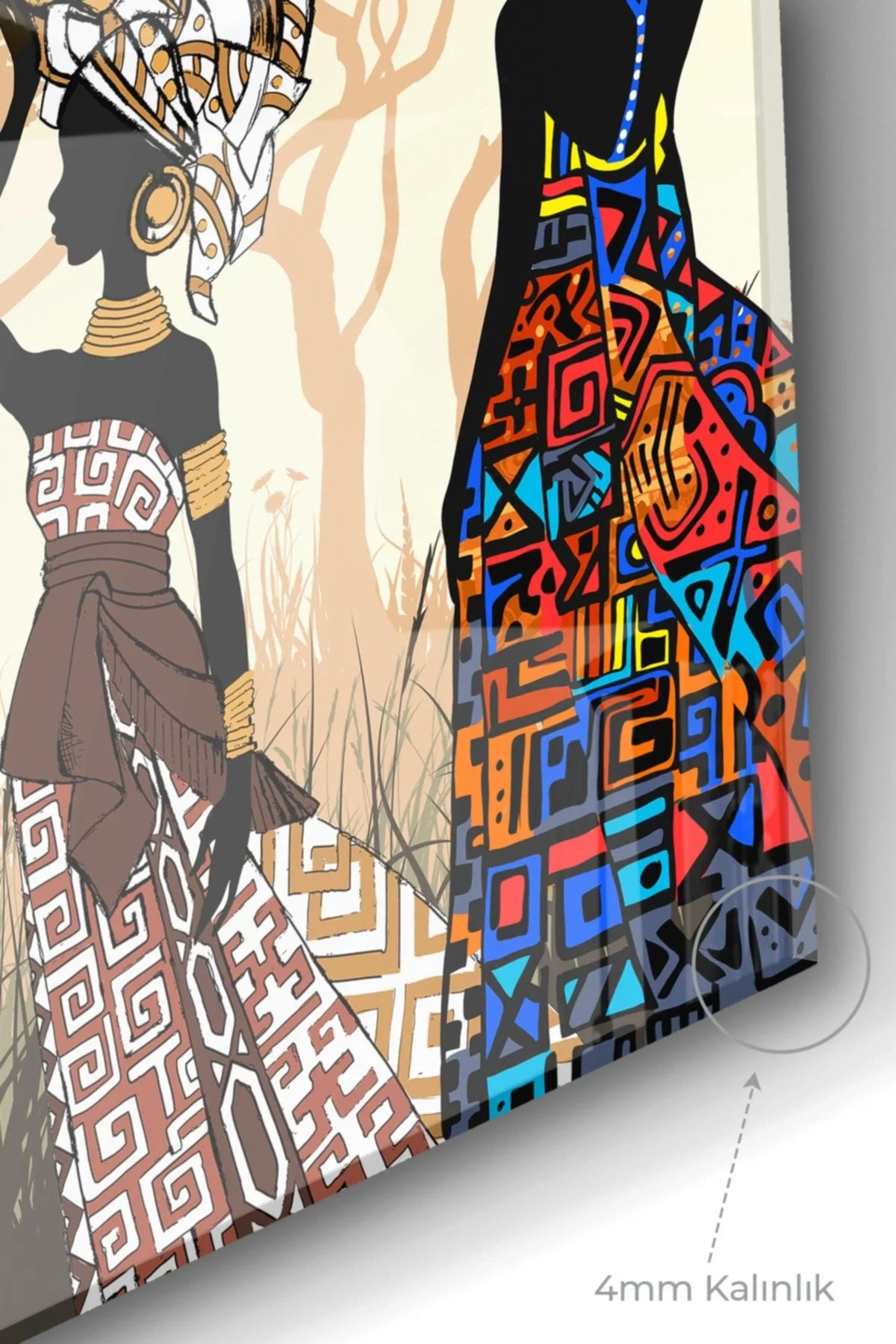 African Black Women with Ethnic Patterns | Ethnic Themed Glass Painting | 50x70cm