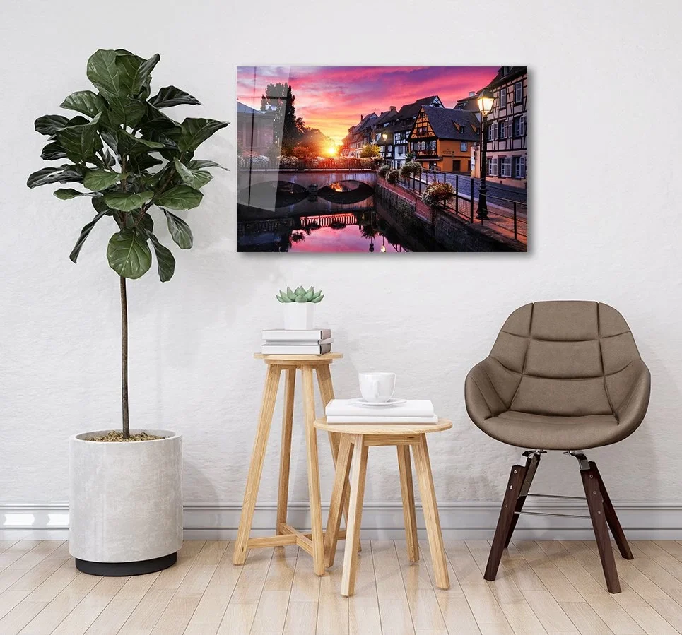 TEKNOO- Bridge Reflection and Houses Glass Painting