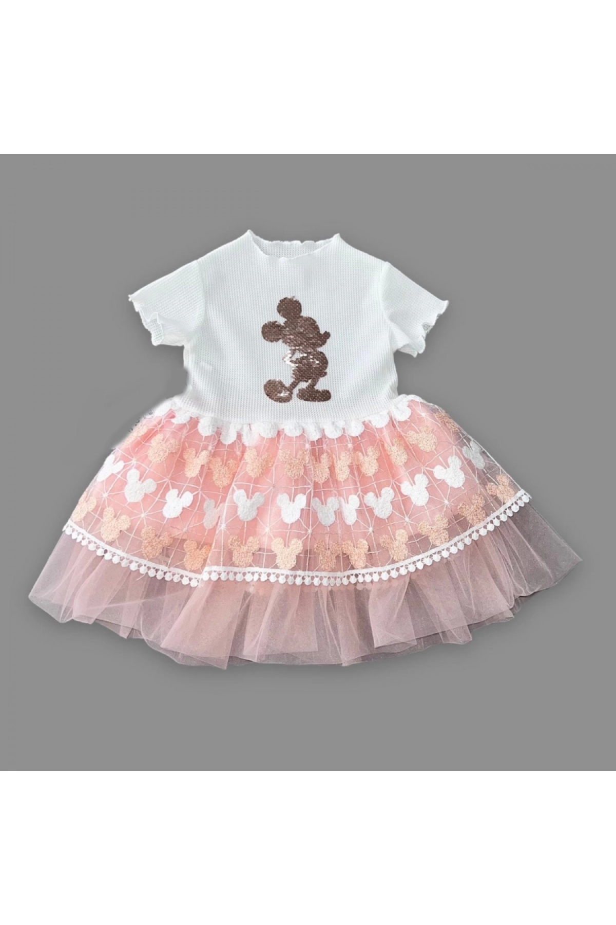 1-2-3 Years Old Sequined Mickey Printed Baby Girl Dress with Embroidery Skirt