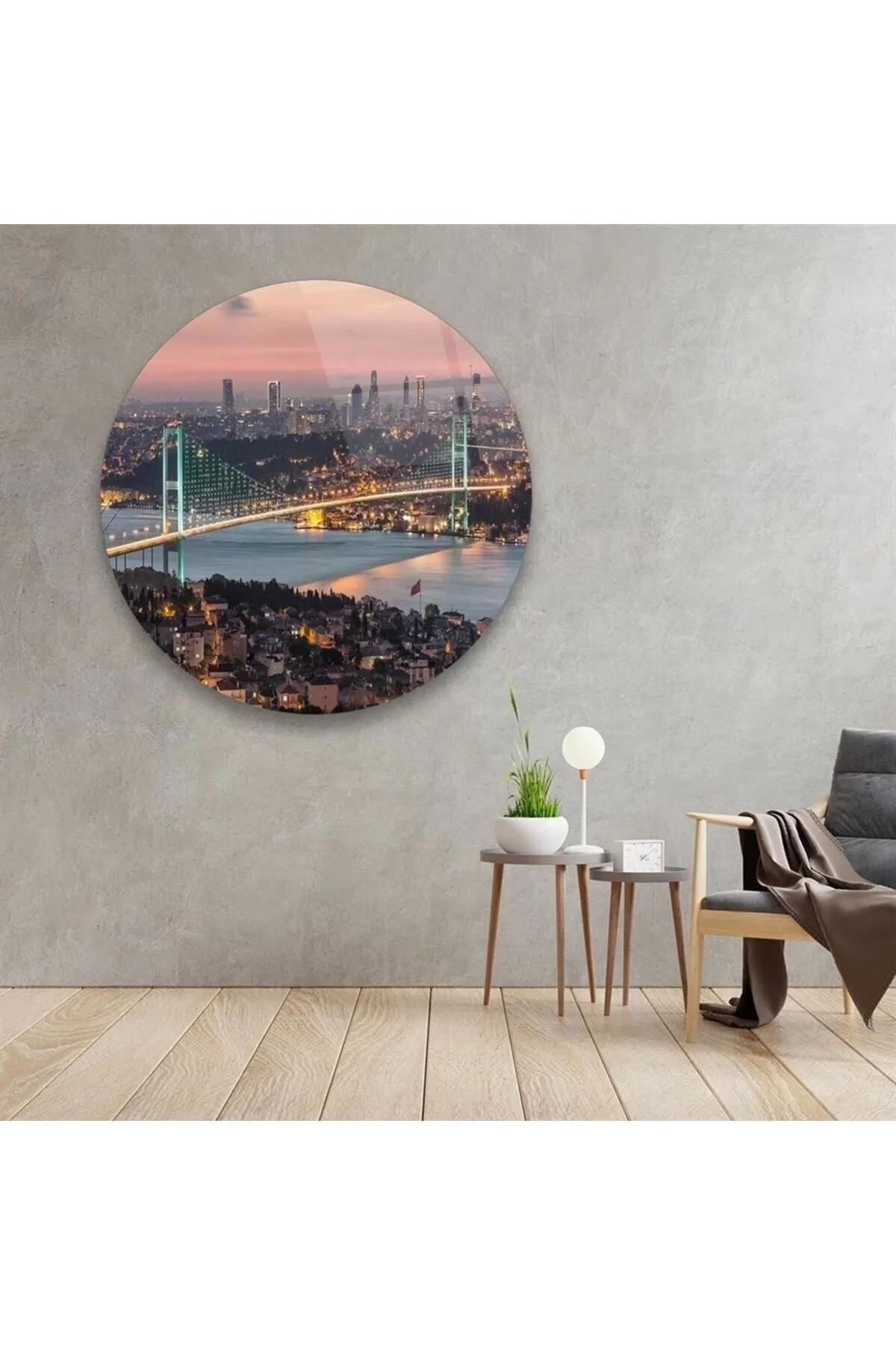 Istanbul Bosphorus Bridge Round Glass Painting