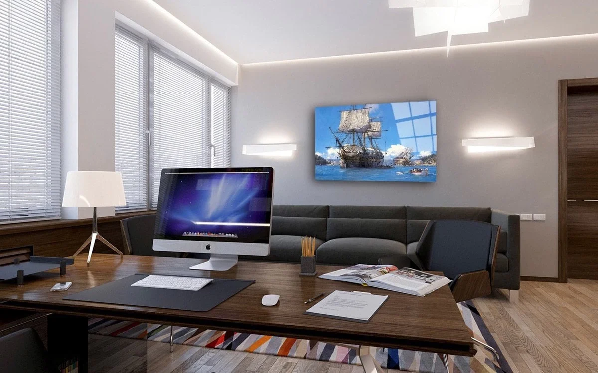 The printing of the glass painting is in the form of direct printing on the back surface of the glass. In this way, the printing remains behind the glass and you will see the high printing quality with the elegance of the glass.