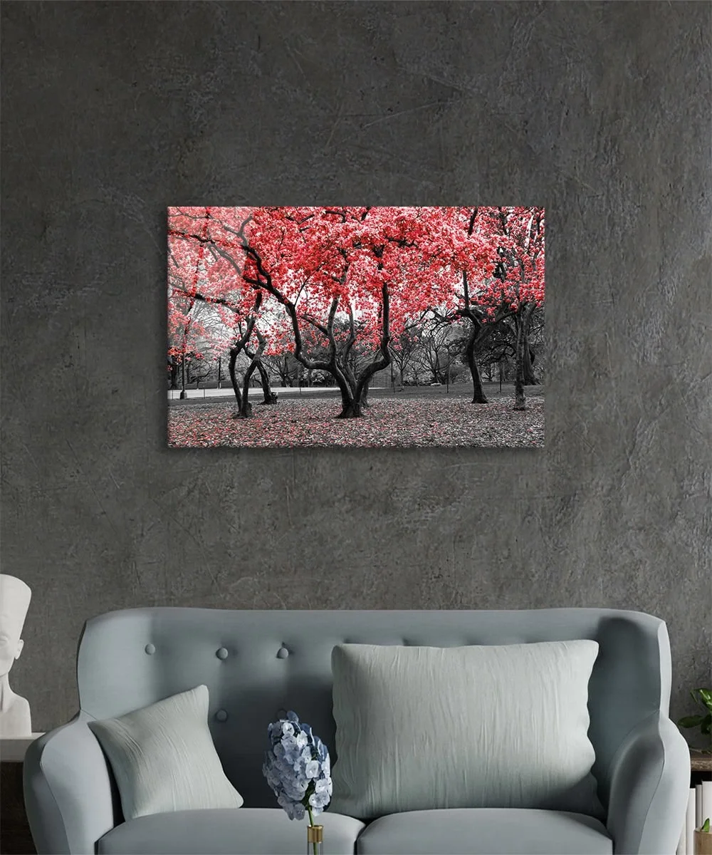 TEKNOO- Red Trees Nature Glass Painting Home and Office Wall Decoration