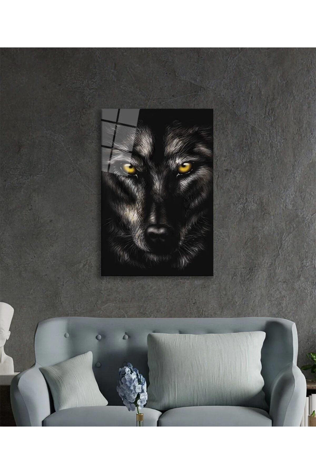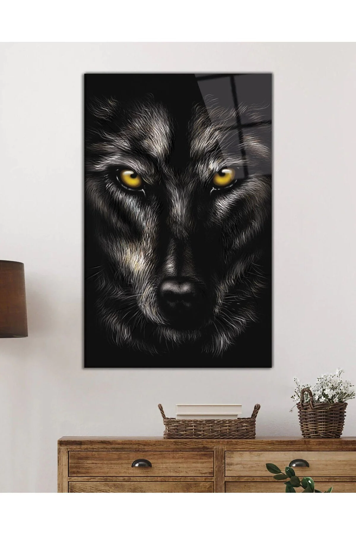 Yellow-Eyed Wolf Animal Portrait Glass Painting,