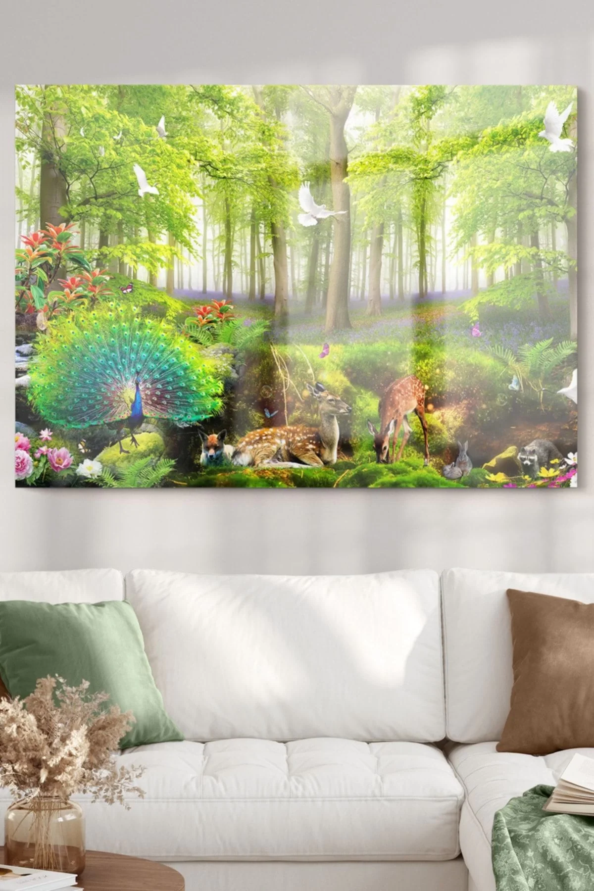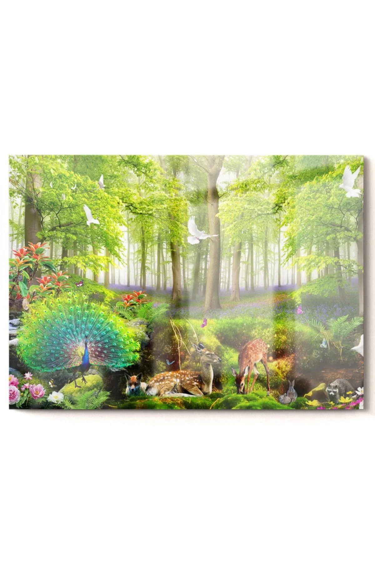 Green Forest And Animals | Nature Themed Glass Painting | 50x70cm