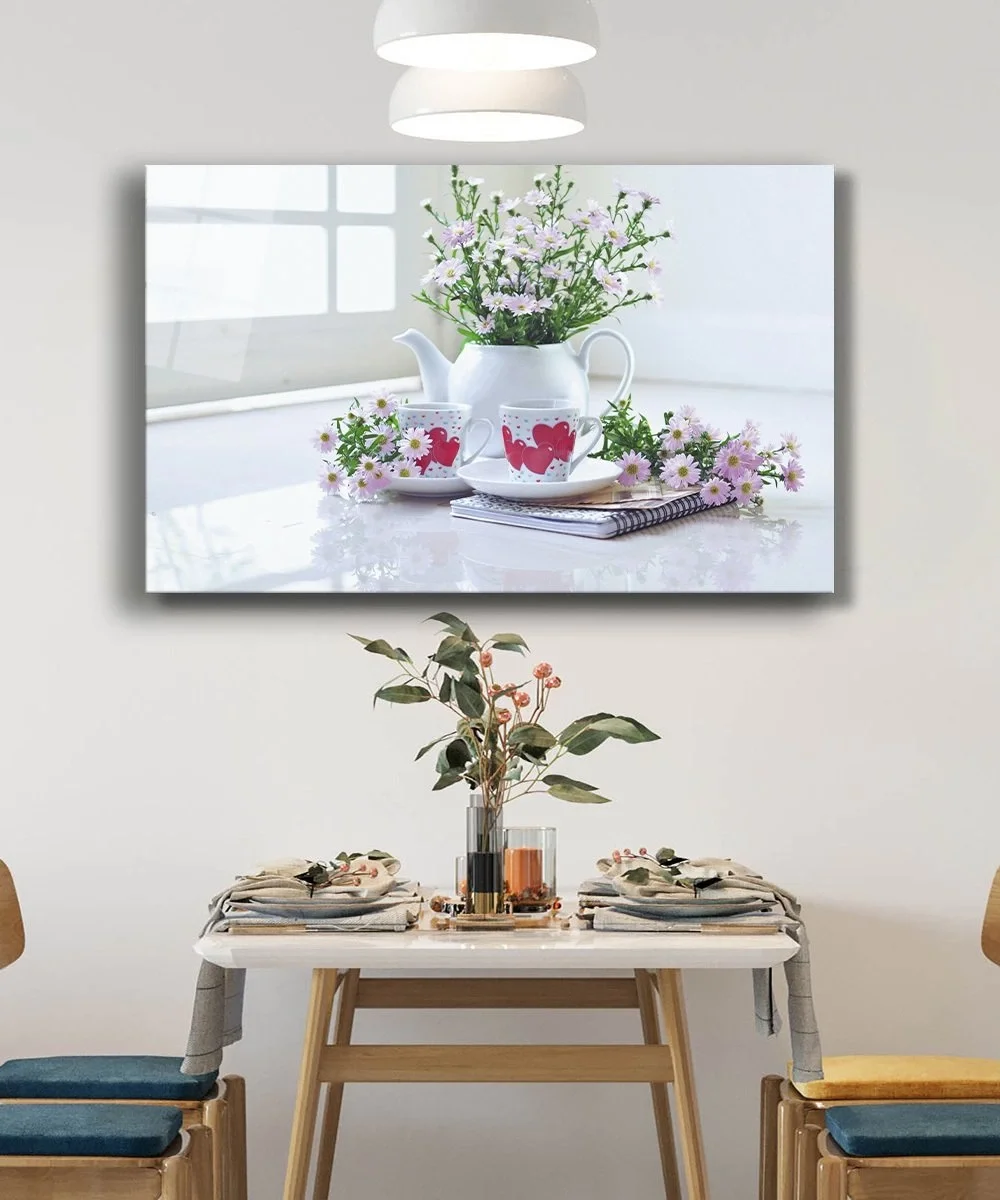 Flowers Heart Cups Kitchen Glass Table