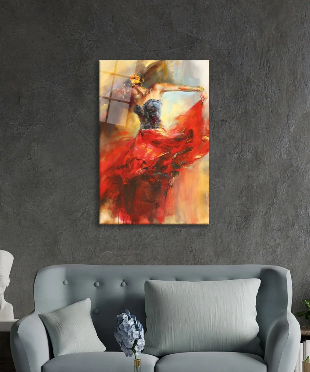 TEKNOO- Red Ballerina Glass Painting Home and Office Wall Decoration