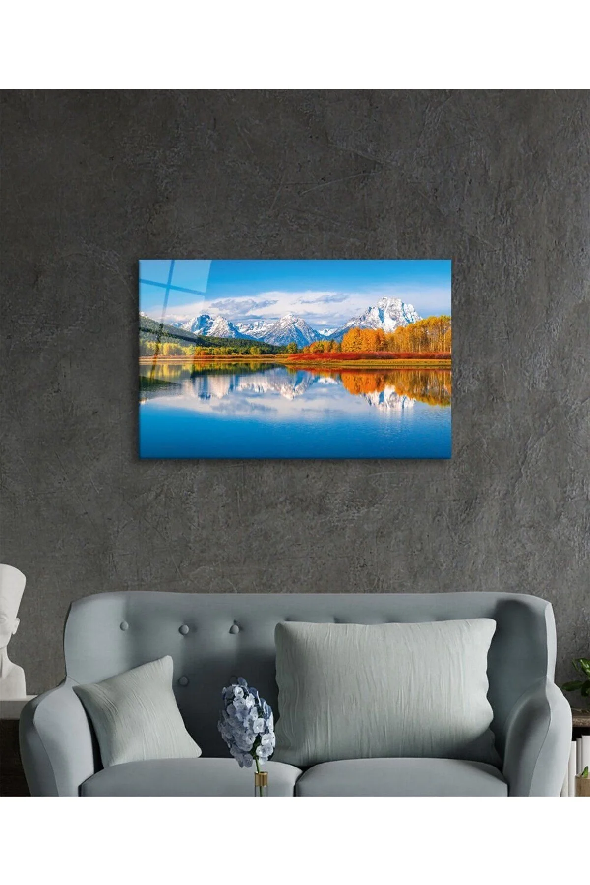 Mountain Reflection Landscape Glass Painting, Home And Office Wall Decoration,