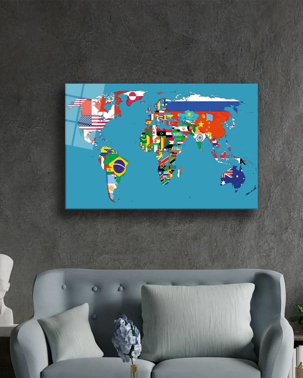 TEKNOO- Flags World Map Glass Painting