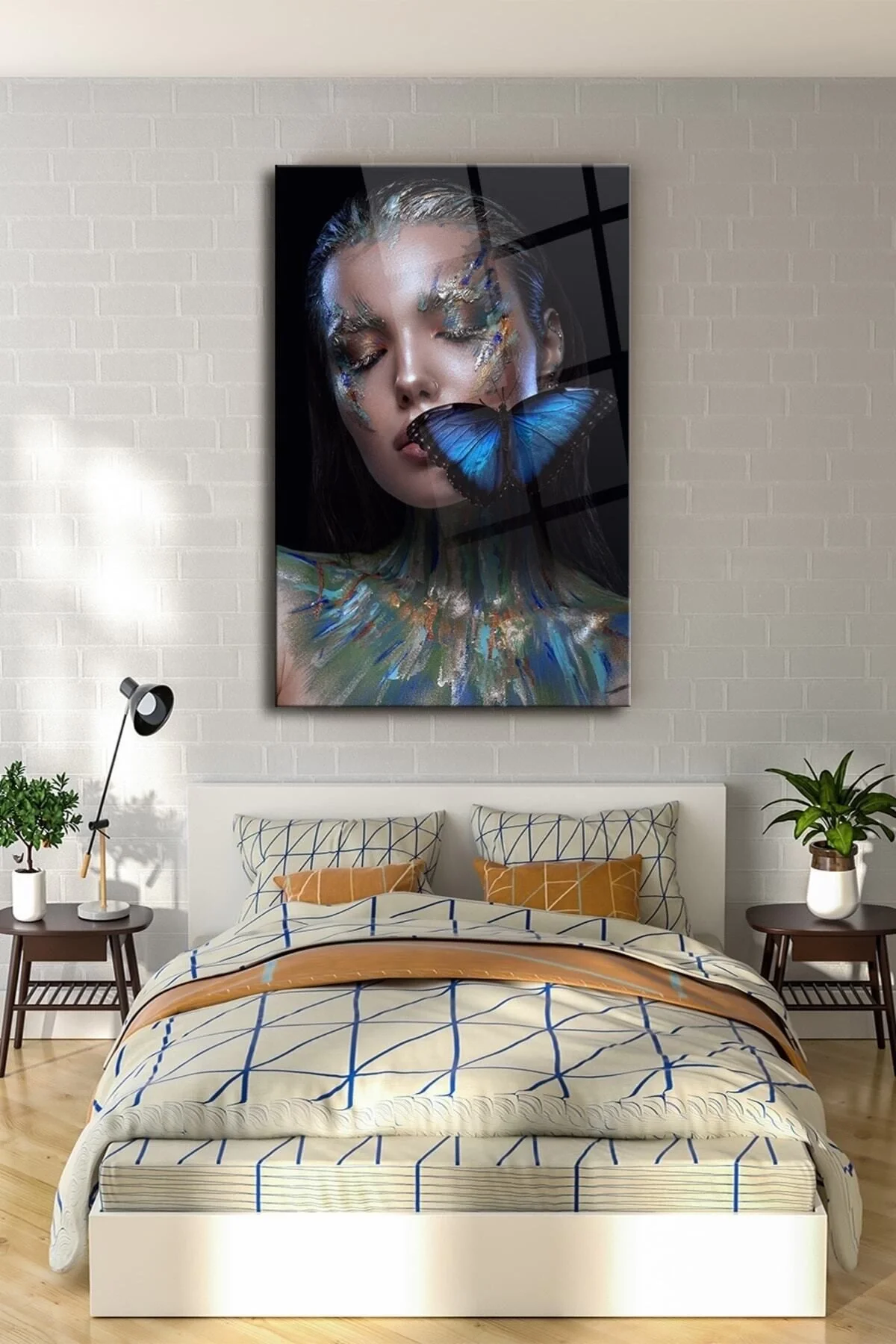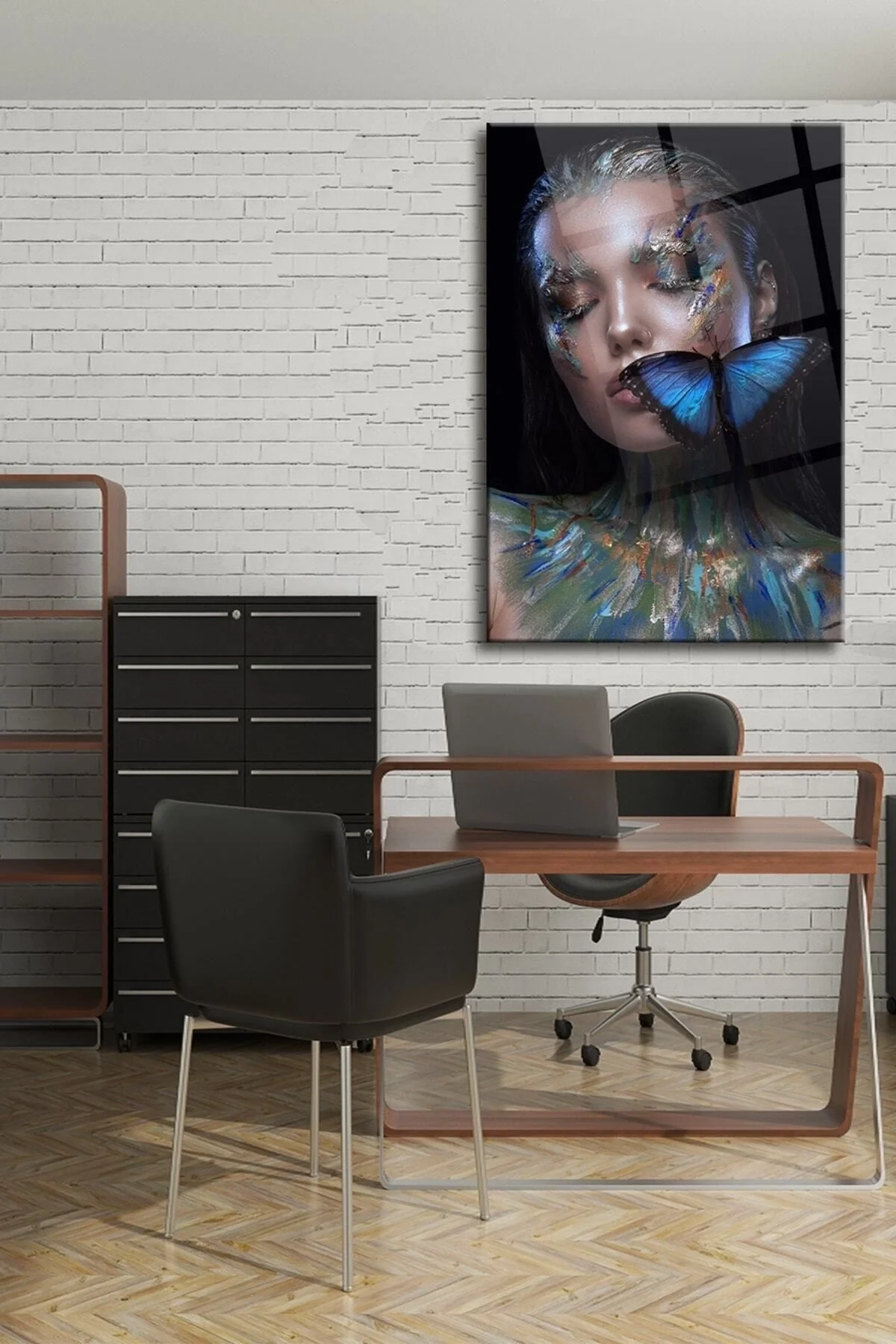 Butterfly Woman Portrait Glass Painting, Office Wall Decoration Products, Home Decoration