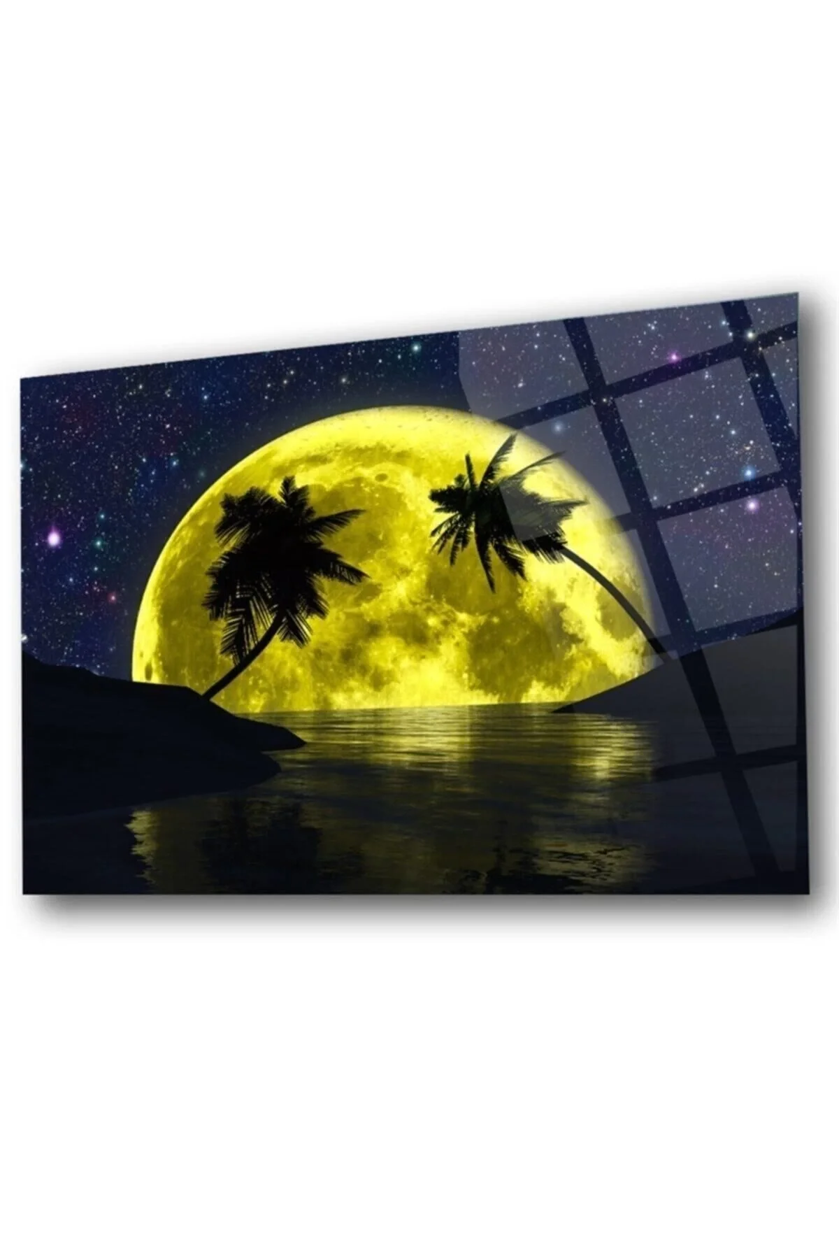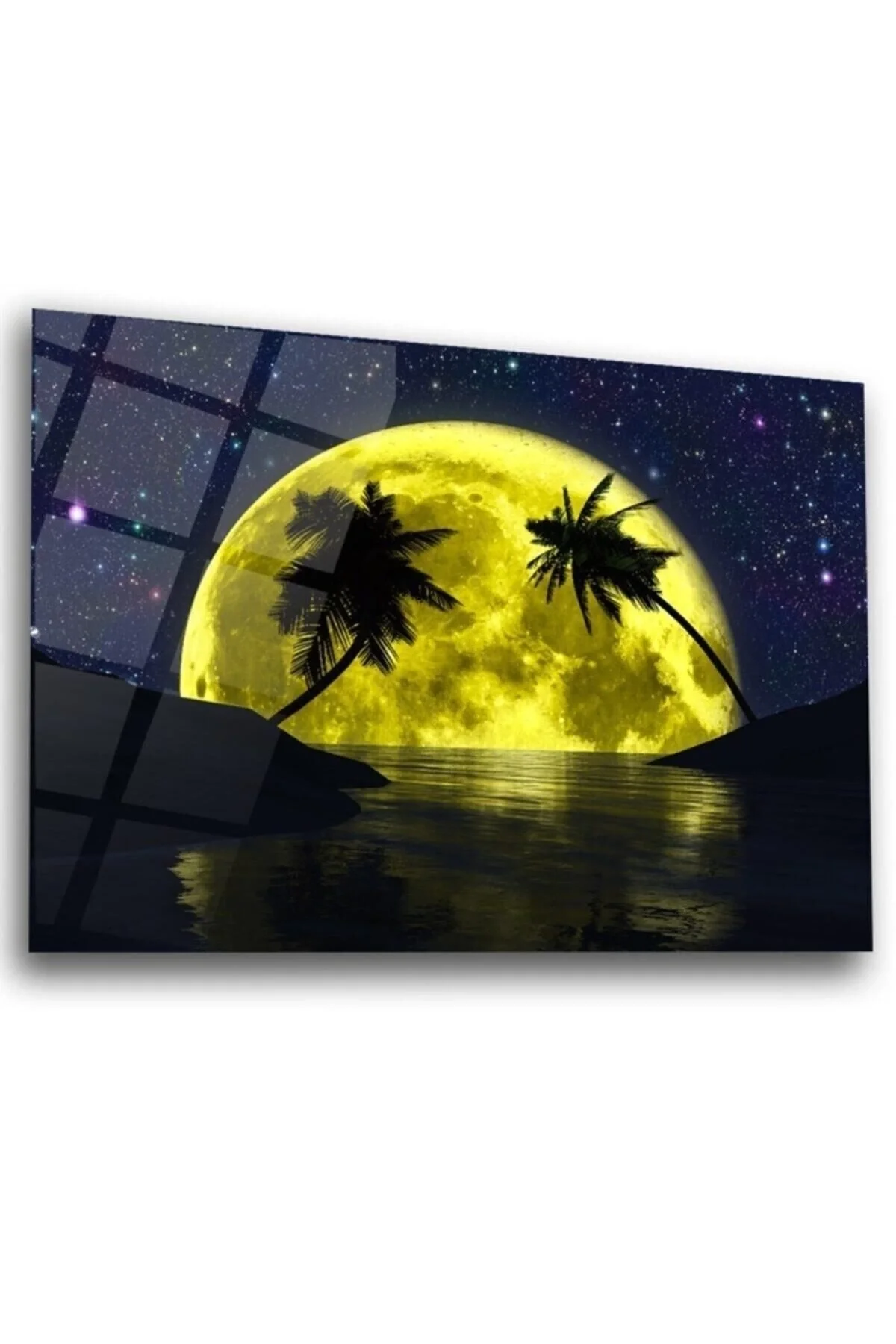 Palm Tree And Full Moon Glass Painting Wall Decoration