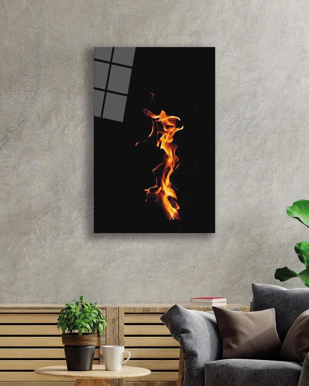 TEKNOO- Red Black Flame Glass Painting