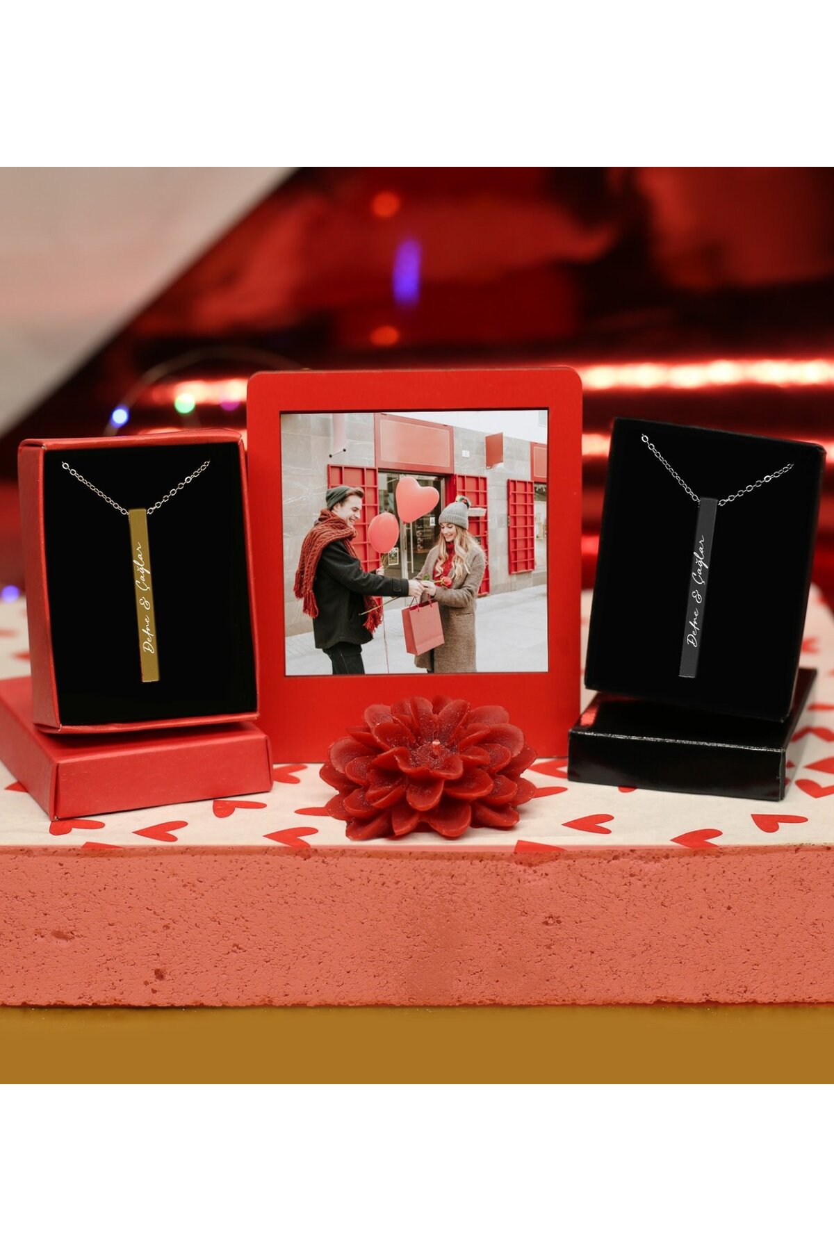 PRODUCT CONTENT Personalized Instagram Frame *It will be personalized with 1 photo you send to us inside the pocket-shaped frame. *Wooden picture frame dimensions: 12 x 10 cm. Photo dimensions: 8.50 x 8.50. *You can easily display it on your table with the support leg. Special Double Stick Necklace for Valentine's Day *It is personalized. It is made by laser engraving method. The text is not erased or deformed. *Metal: Bijouterie Material *Pendant Dimensions: 4 mm x 4.2 cm *Chain Length: +-60 cm *2 stick necklaces will be sent. *Candle with Lotus Flower Motif. It will be sent in its own box. *Size: 6x6 cm.