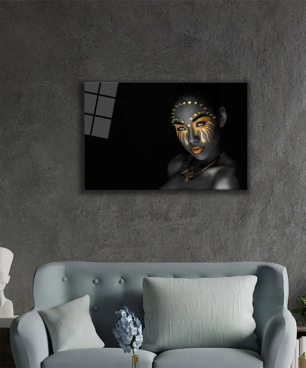 TEKNOO- Black Woman Gold Makeup Glass Painting