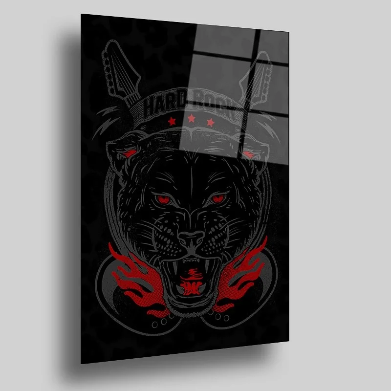 Red Black Wolf Glass Painting