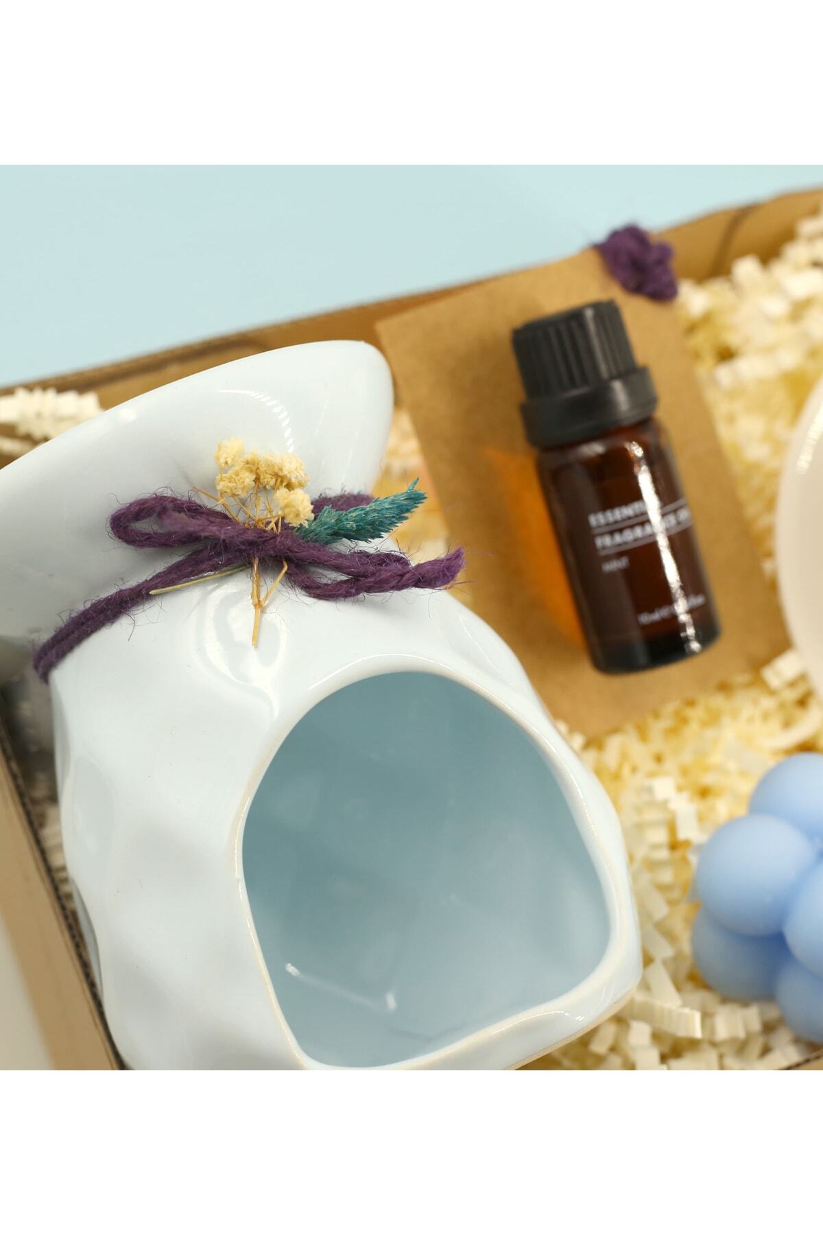 PRODUCT CONTENT Personalized Name Printed Cup *Your gift will be personalized with the name you want written on the cup. *Product Dimensions are 6 cm x 5.5 cm. *You should not throw the printed cup into the dishwasher. Otherwise, the print may come off. It is recommended to wash by hand. *Your cup is sent in its own box. ***After placing your order, you must share the name you want written on the cup with your order number in the message section. Pineapple Design Blue Incense Burner Thanks to the tealight candle placed at the bottom of the incense burner made of glazed ceramic, the incense oils placed in the upper chamber slowly heat up and help to change the atmosphere of the environment with the candle light emitted from the motifs on the incense. Produced to be resistant to high temperatures, the Pineapple Ceramic Incense Burner can be used in all kinds of decor with its stylish design. *Censer dimensions: 11 cm x .5 cm. Censer Essence is used to give a pleasant scent to the environment. Add a few drops of the product into the water you added to the censer bowl. You can spread the scent around by lighting a tealight candle at the bottom of the censer. *Pattern: Sandalwood, Mint, Orange * Size: 10 ml Collection *Theme: Natural *Product Composition: Essential Fragrance Oil Material **One of the Sandalwood, Mint, Orange scents will be sent depending on stock availability. * Bubble Wax Material: Paraffin. *Candle is 3.5cm