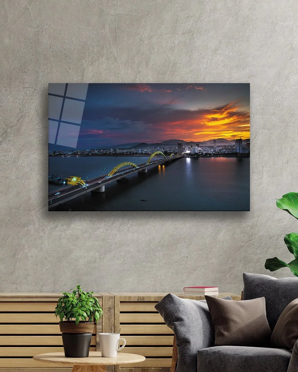 Sunset City Bridge Landscape Glass Painting