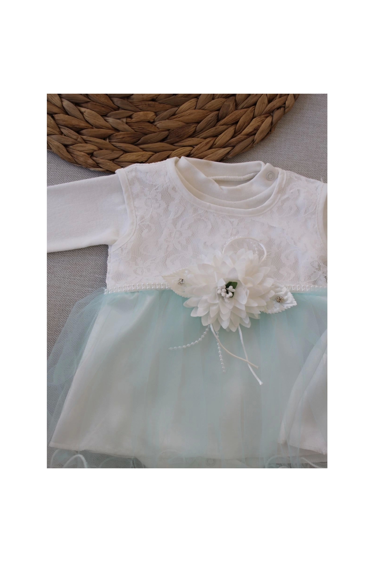 It is designed with advanced embroidery technology. The snap used on it does not come into contact with the baby's skin. Polyester thread is never used in our products. The threads used are cotton or viscose blended threads. Our products have sleeve joining, collar joining, trouser crotch joining etc. In order to prevent the product from being damaged by force during use, it is necessary to apply ÇİMA stitching, which is an extra reinforced stitching type, in the specified parts. In our products, the size label number and washing instruction information are applied to the neck of the product as a neck print and as a dye print with ecological dyes. The snaps used in our products are nickel-free certified, extra quality snaps. The snap and button locations (details) are designed to be in places that will not harm the baby while he is lying down. In our products, zippers etc. Accessories are used from certified brands and models that comply with international standards and do not harm the health of mother and baby. In our products, there are no traces on the surfaces that come into contact with the baby's skin, the back of embroidery, etc. Be sure to use interlining etc. on risky surfaces and on all details that may irritate the baby's skin. It is essential to take the necessary precautions to prevent the baby from being harmed. The fabric, tulle, lace etc. we use in our products. All materials must be produced from materials with anti-allergic and anti-bacterial properties.