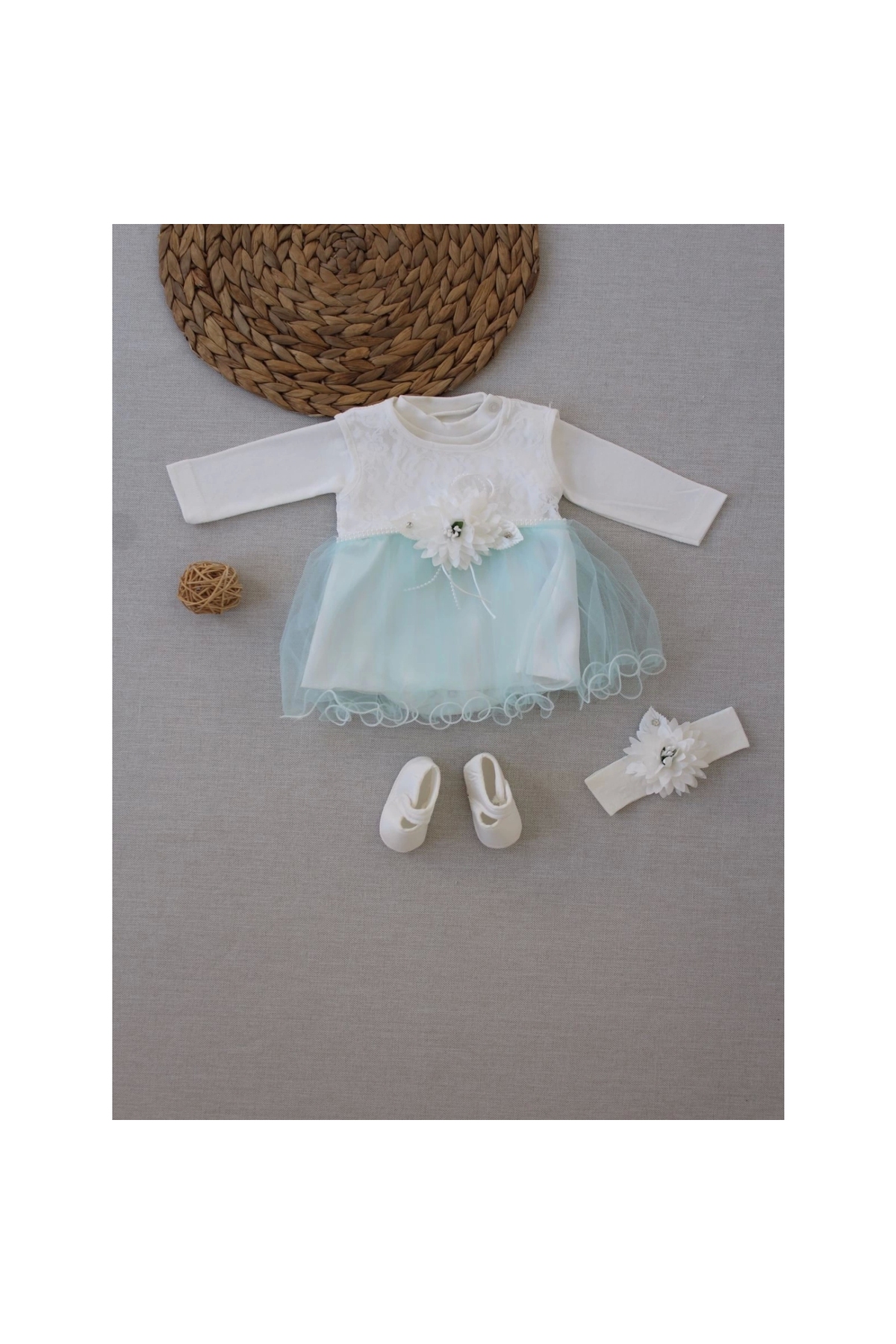 0-6 Months Tulle Skirt with Ribbon and Stone Detail Baby Girl Gift, Mevlut, Henna Dress 3 Piece Set