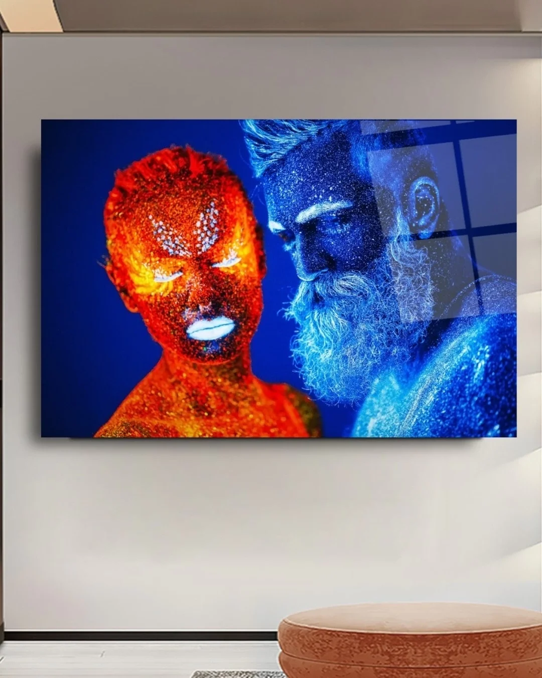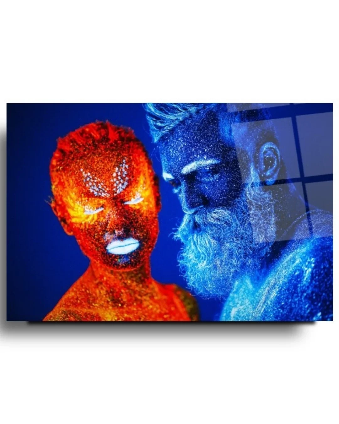 Fire and Ice Contradiction Themed Artistic Glass Painting