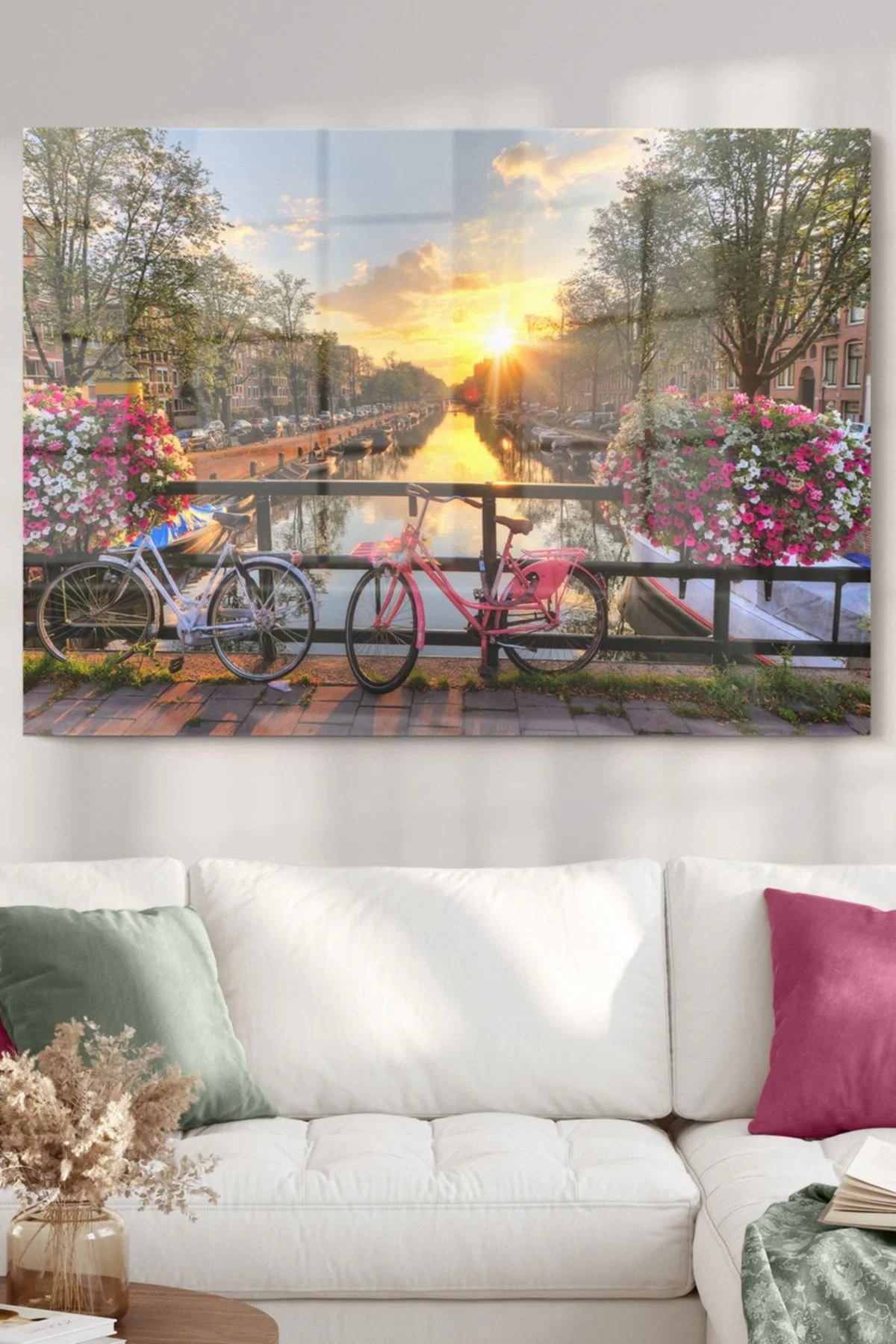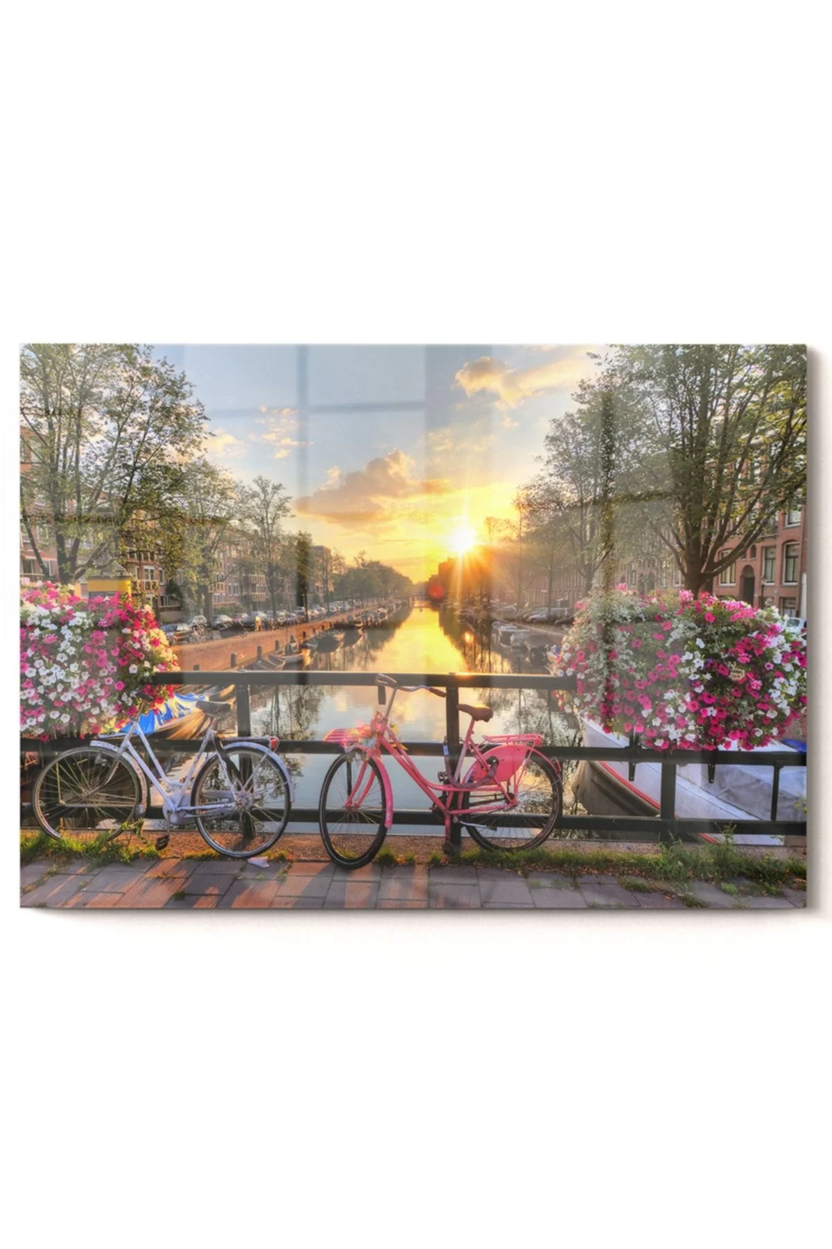 Netherlands Utrecht Bicycle Bridge | Landscape Themed Glass Painting | 50x70cm
