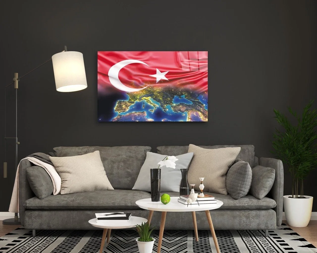 Turkish Flag and World Map Glass Painting