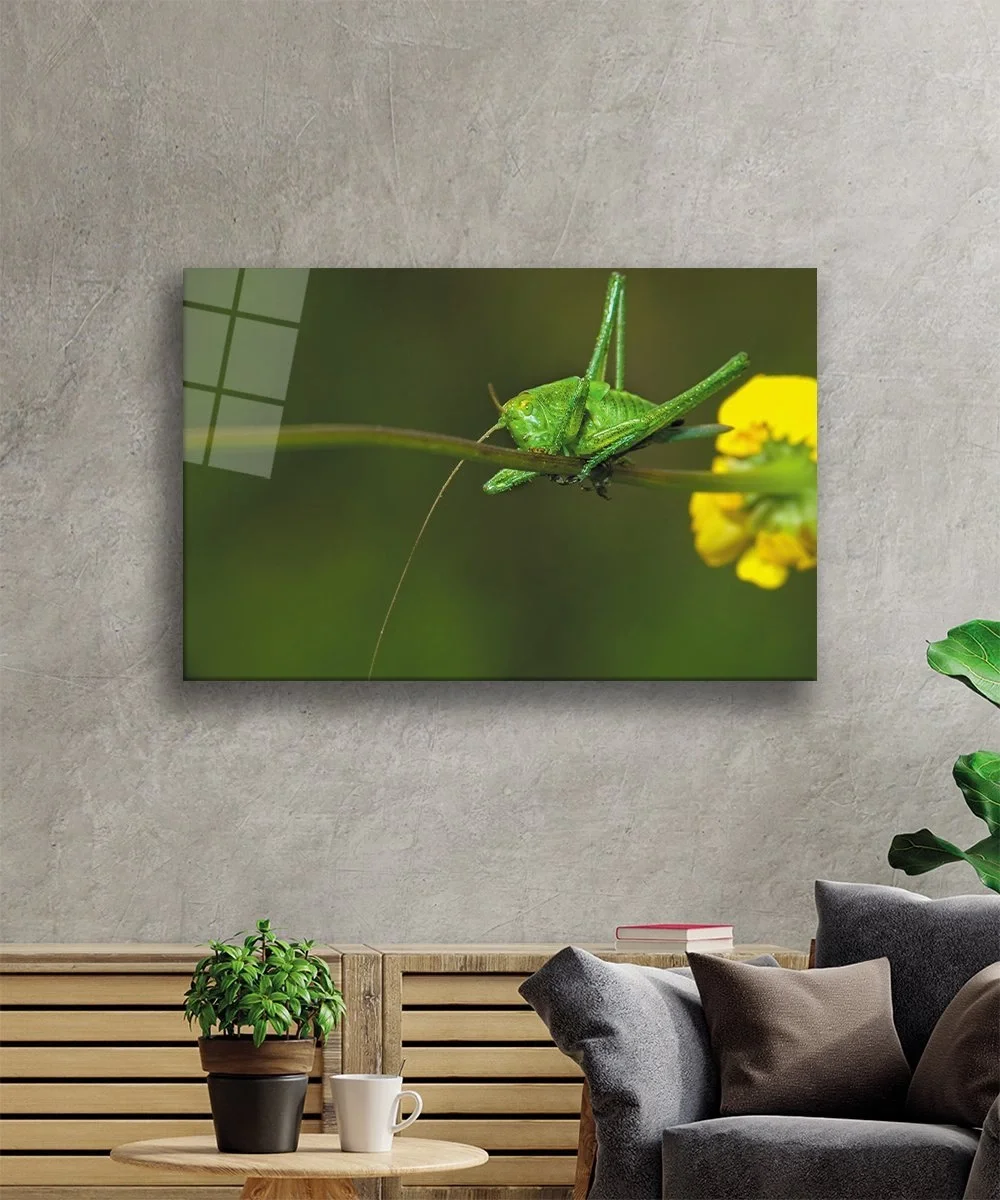 TEKNOO- Yellow Flower Green Grasshopper Glass Painting