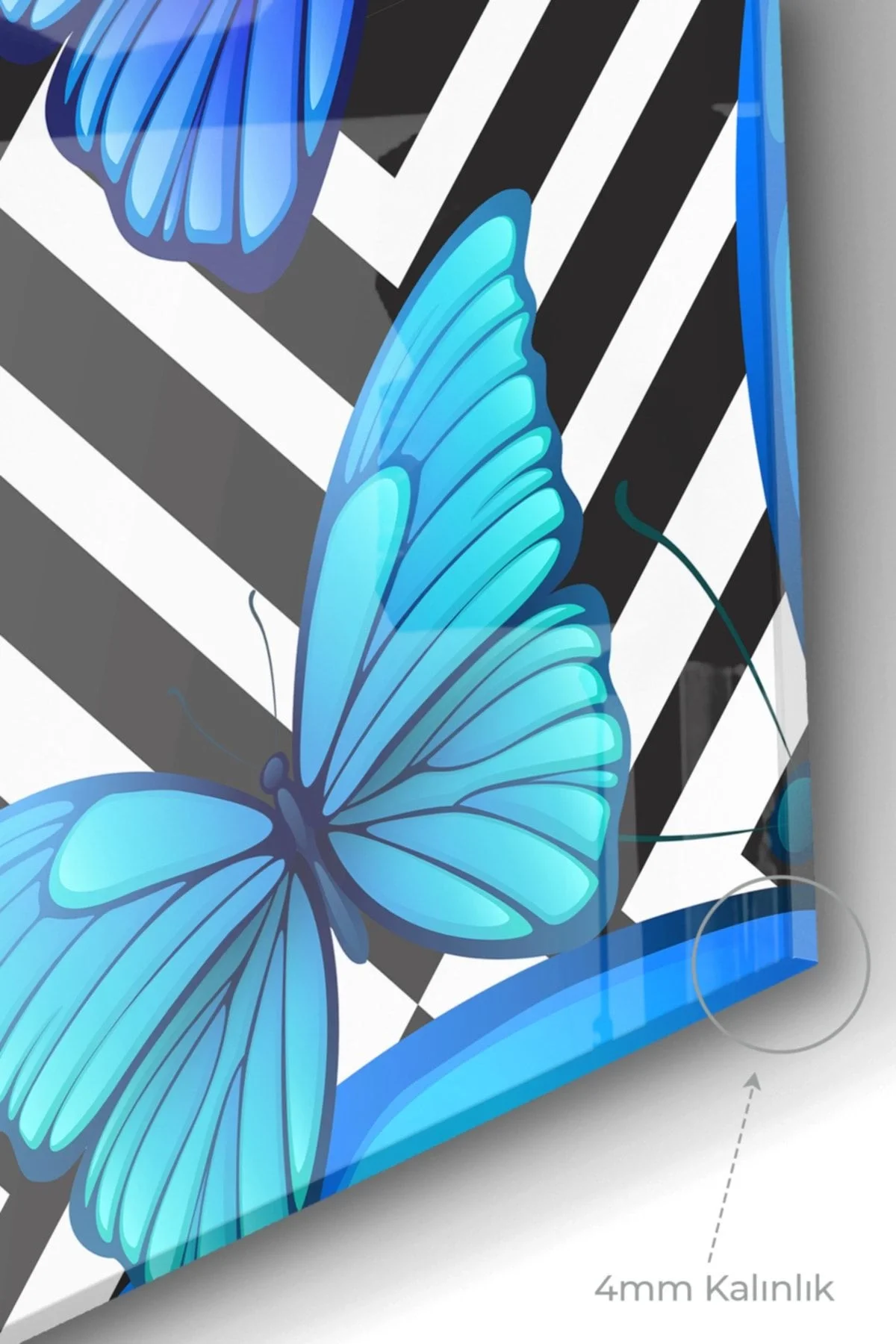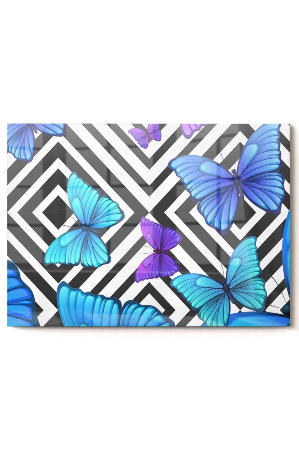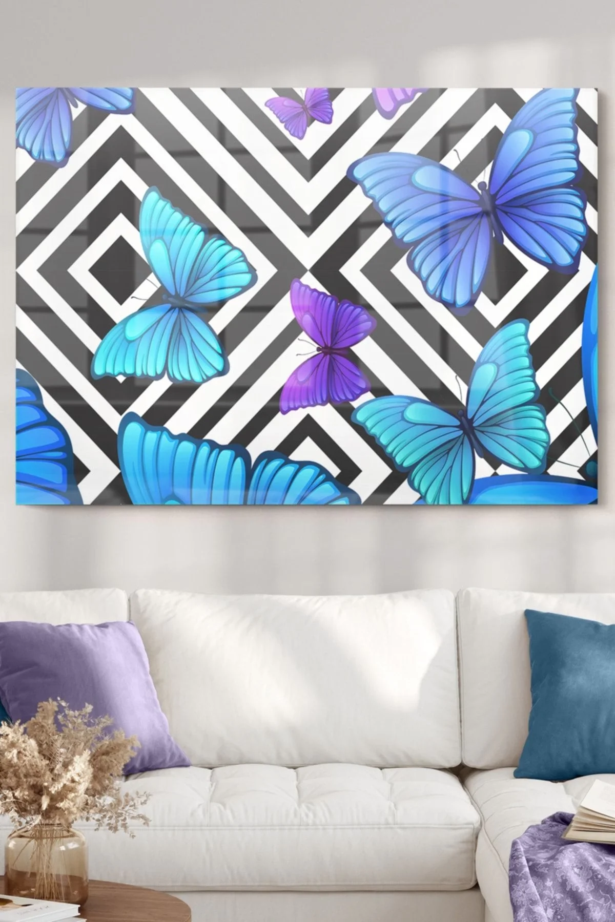 Blue Butterfly with Geometric Pattern | Animal Themed Glass Painting | 50x70cm