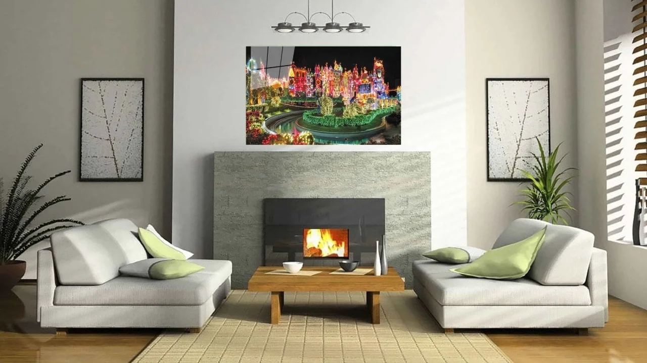 The printing of the glass painting is in the form of direct printing on the back surface of the glass. In this way, the printing remains behind the glass and you will see the high printing quality with the elegance of the glass.