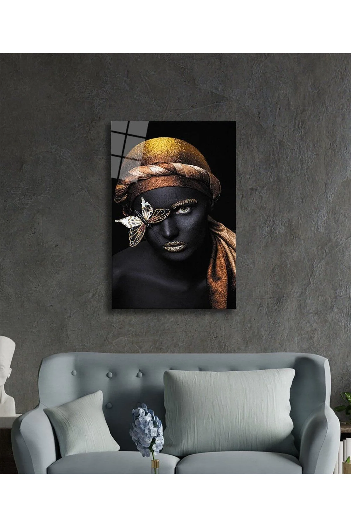 Black Woman Gold Butterfly Glass Painting, Home And Office Wall Decoration