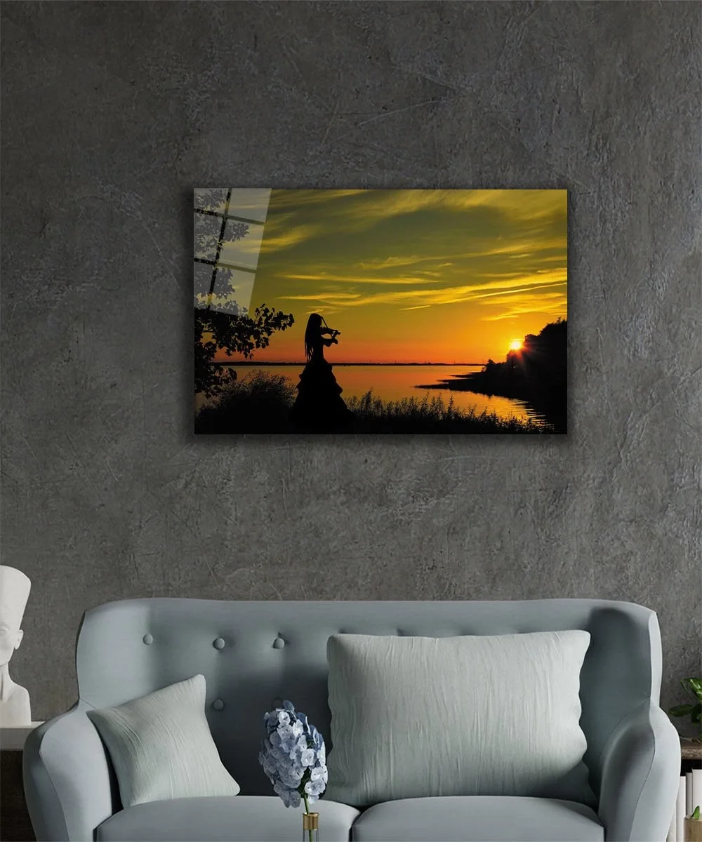 TEKNOO- Sunset and Woman Playing the Violin Glass Painting
