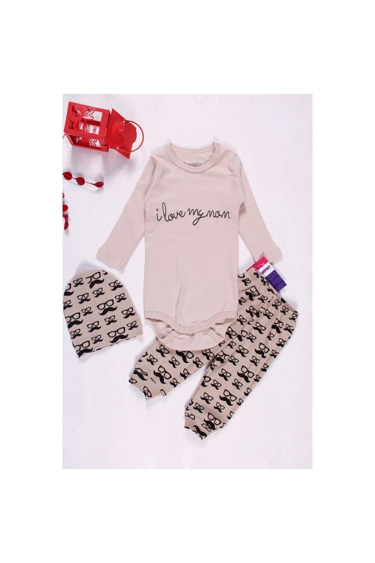 Mustache Glasses Patterned 3-Piece Baby Boy Set
