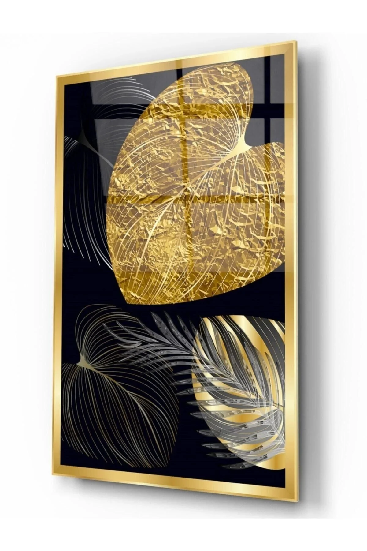- Add color to your living spaces with thousands of glass painting models, to which new models are added every day. - It is produced by printing directly on tempered glass with the best printing machines in the world. - Since our products are tempered glass, they are 10 times more durable than normal glass. Despite all this, our glass paintings, which are sent in their own special boxes, are insured against cargo damage, and if they are damaged in cargo, we send a new one free of charge. Gold Leaves Glass Painting Product Features - It is printed with high-resolution HD quality and state-of-the-art UV machines. - The edges are polished and 1st class 4mm tempered glass is used. - You can easily hang our paintings, which are extremely easy to assemble, on your wall with the special steel hanging bracket, dowel and screw that will be included in your package. - Our products are printed on the back surface of the glass, allowing easy cleaning of the front surface. - Packaging and wrapping is reliable, and any breakage that may occur during shipping, for whatever reason, is under our company's warranty. - You can contact us for your special printing requests.