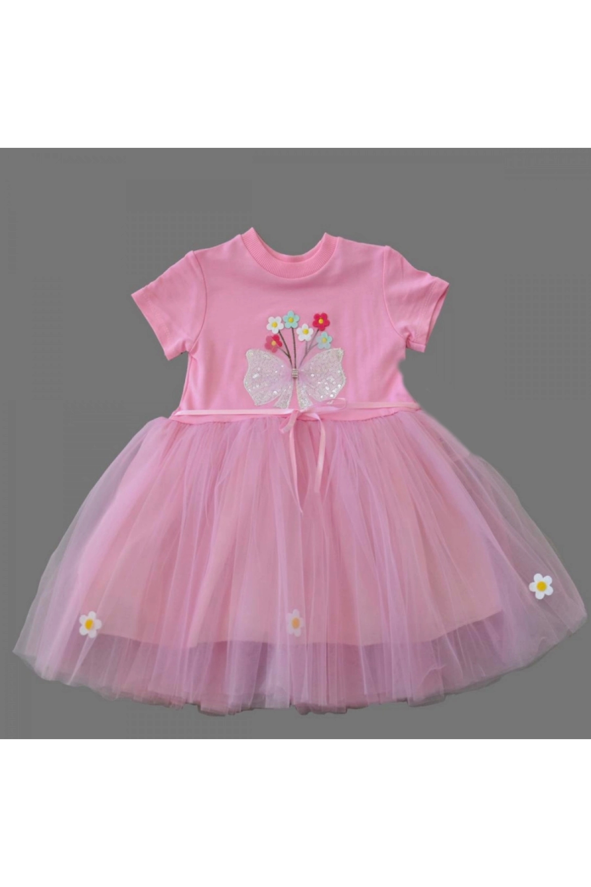 1-2-3 Years Old Tulle Bow Flowers Embroidered Lined Baby Girl Tutu Dress