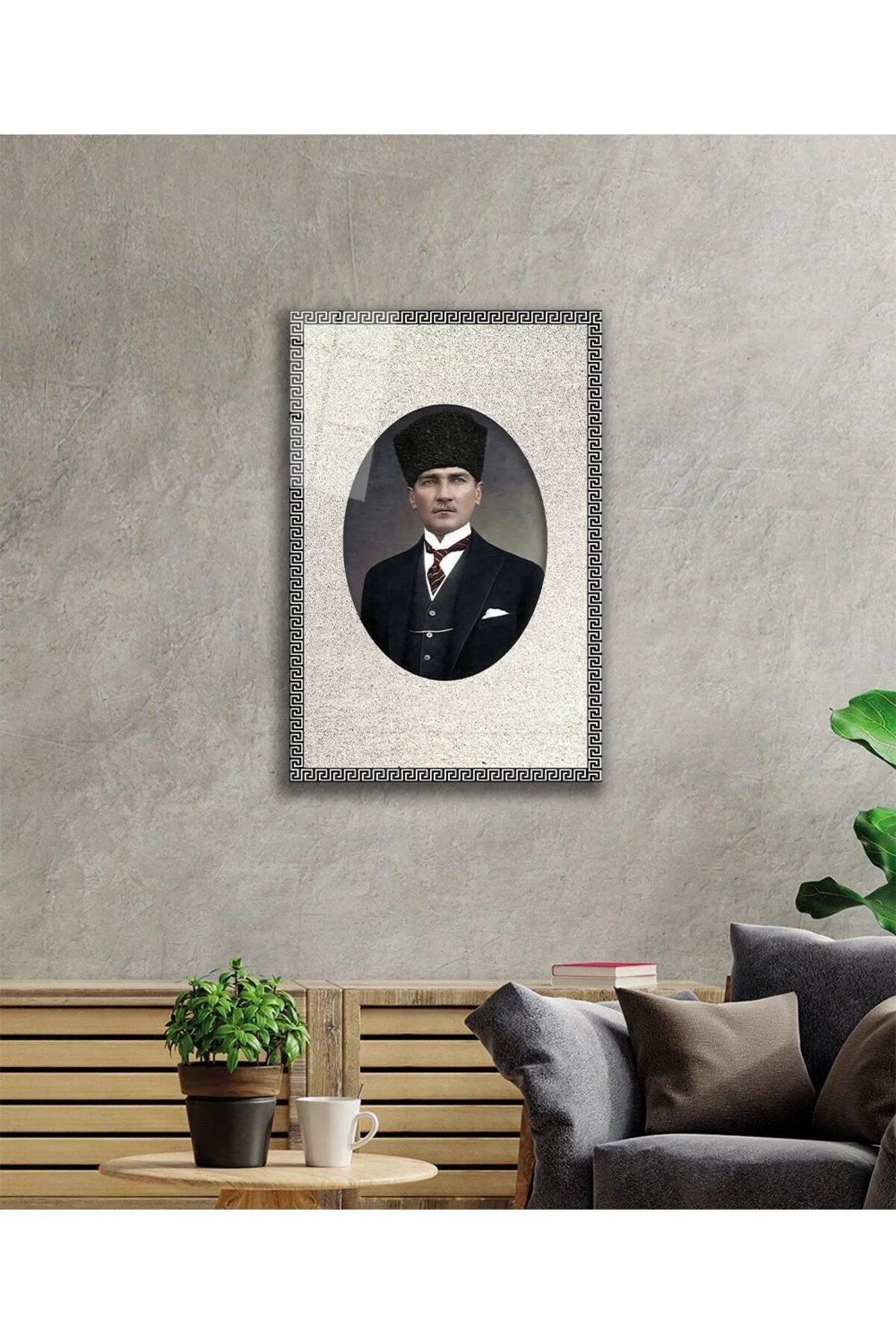 Framed Ataturk Portrait Glass Painting, Home And Office Wall Decor, Large Tempered Glass Painting