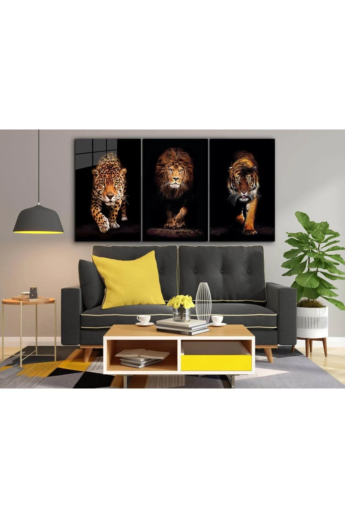 Lion, tiger, jaguar Set of 3 (TOTAL SIZE 210X110 CM) Glass Painting