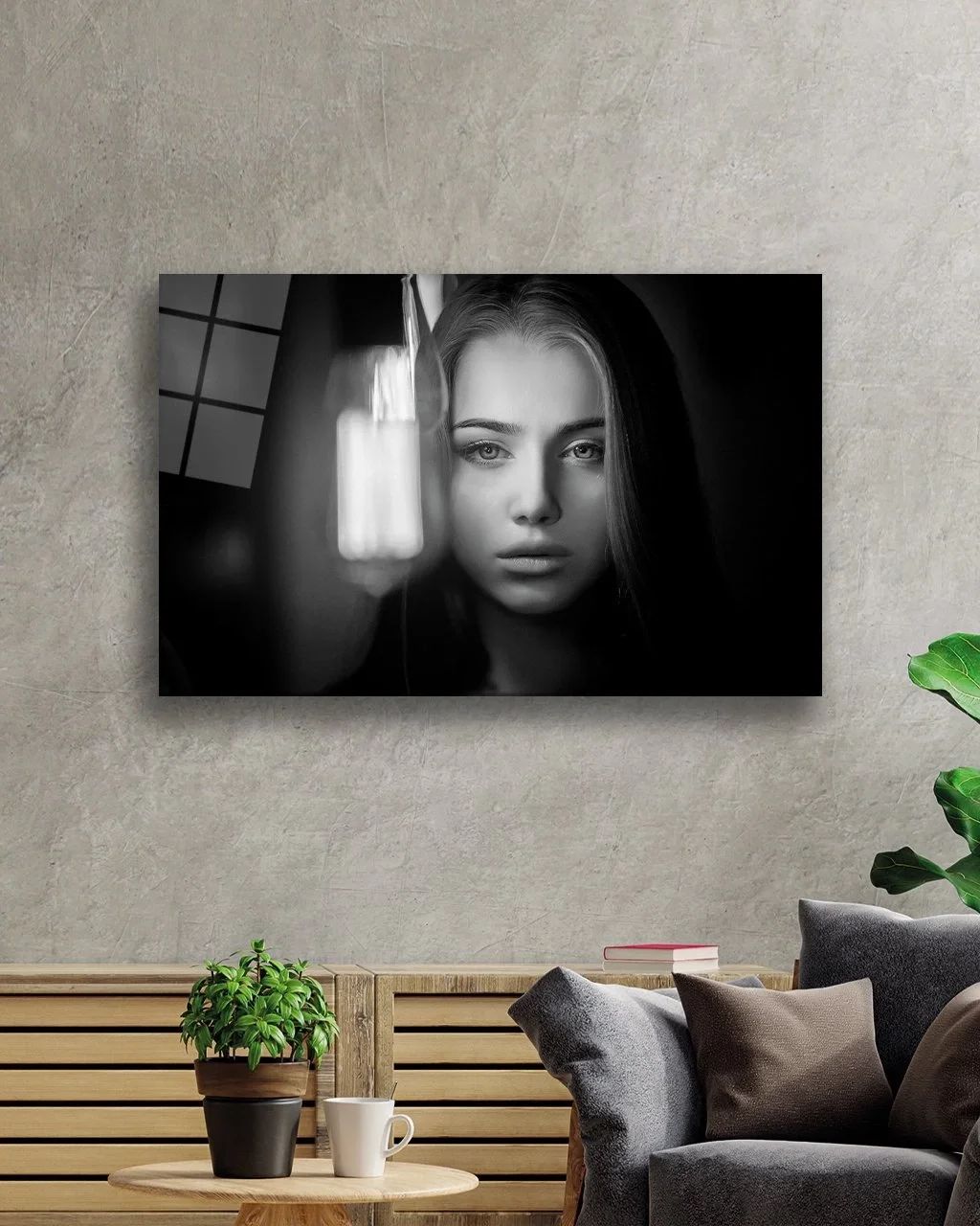 TEKNOO- Black and White People Photos Woman Glass Painting