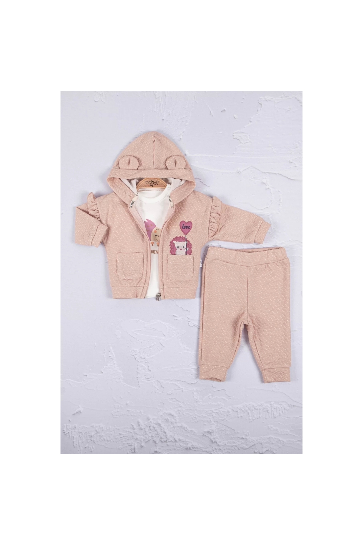 Hedgehog Embroidered 100% Cotton 3-Piece Baby Girl Set
