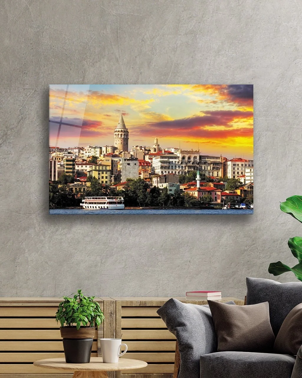 TEKNOO- Red Sky Galata Tower Istanbul View Glass Painting