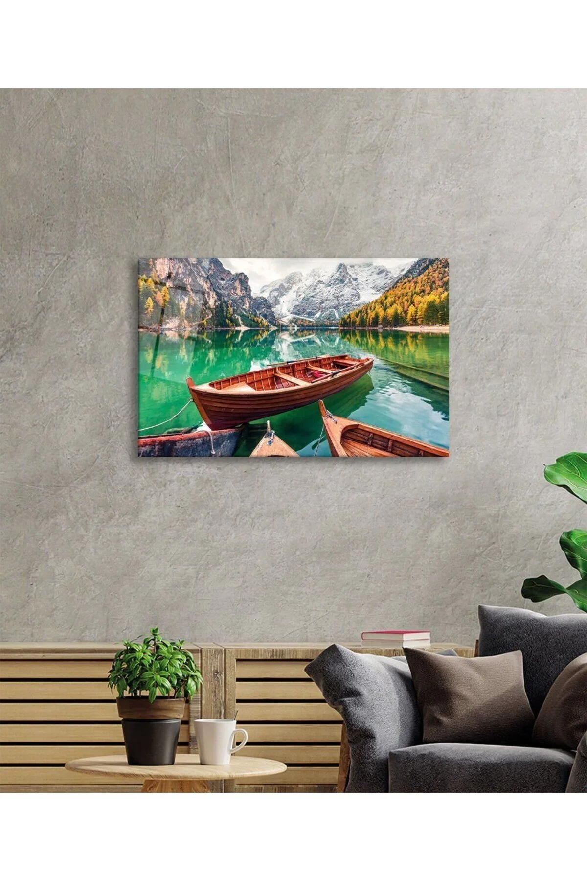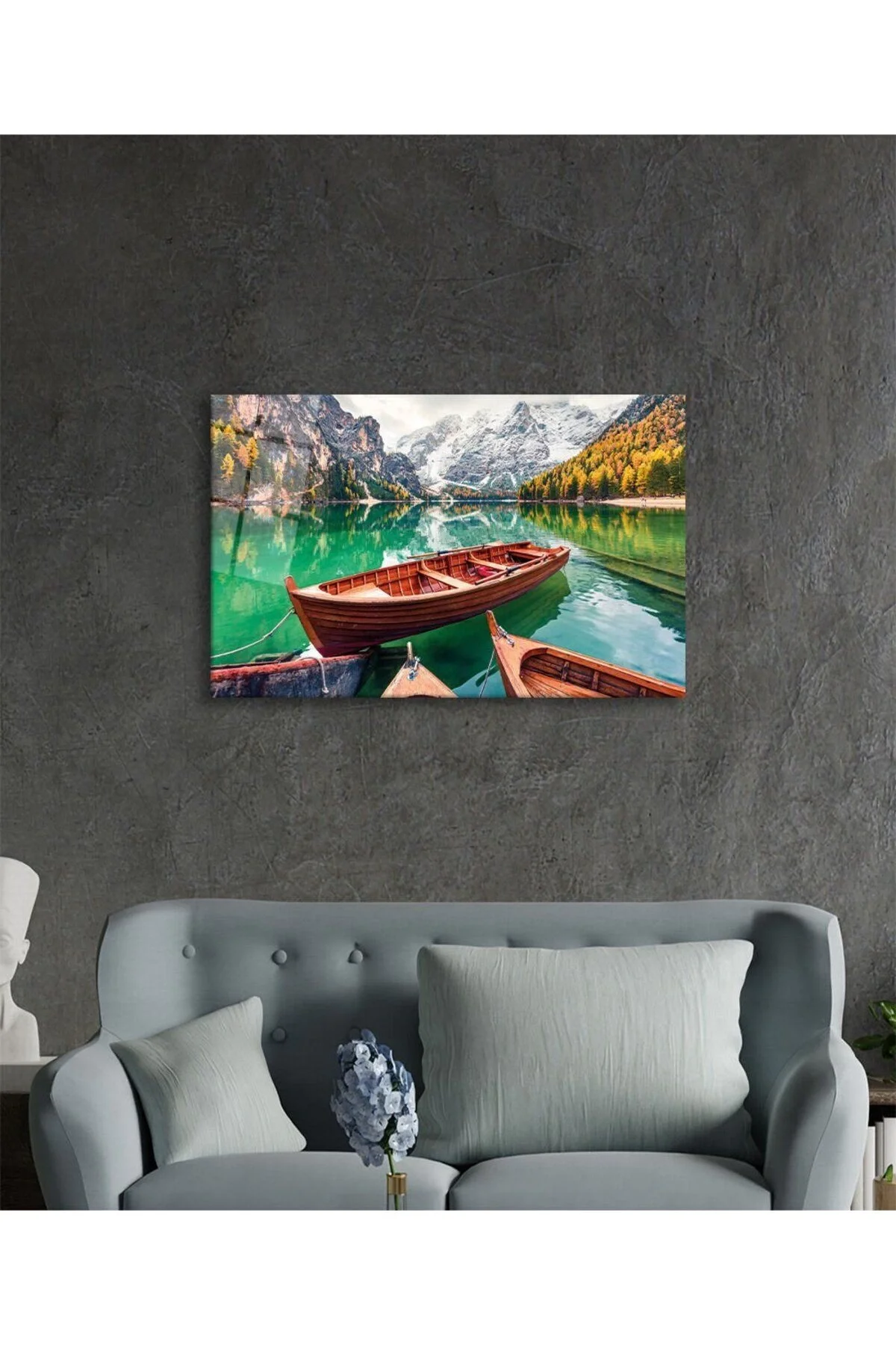 Boat And Lake Landscape Nature Glass Painting, Home And Office Wall Decoration,