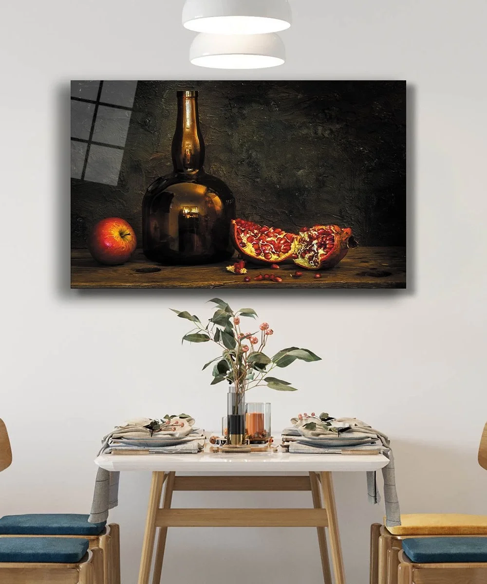 Pomegranate Glass Bottle Still Life Glass Painting