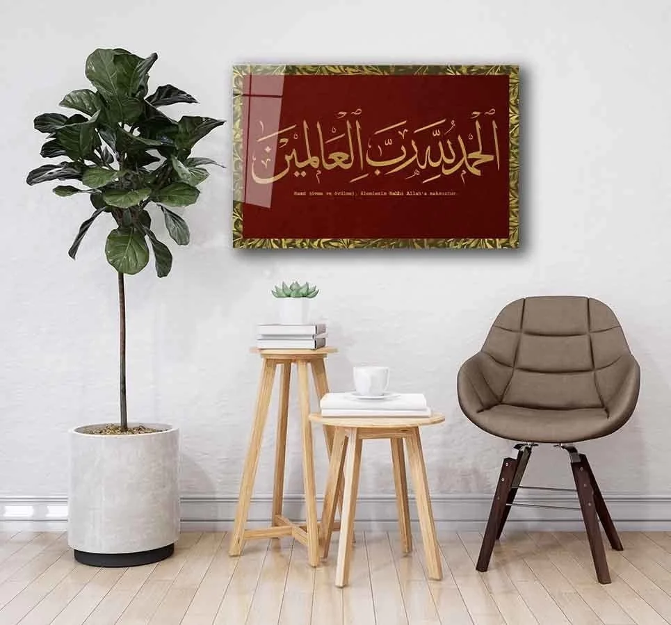 TEKNOO- Yellow Claret Red Glass Painting with Calligraphy Calligraphy