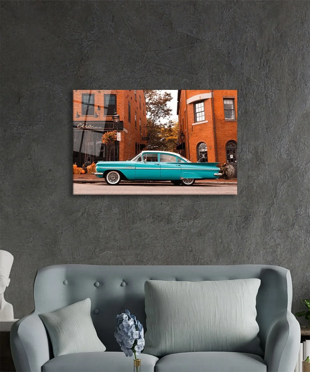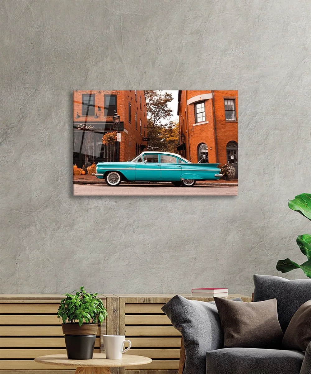 TEKNOO- Classic Car Street Building Glass Painting Home and Office Wall Decoration
