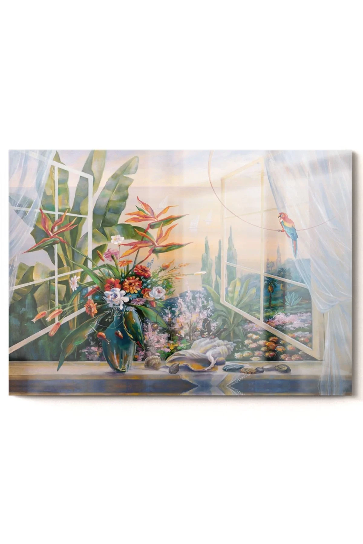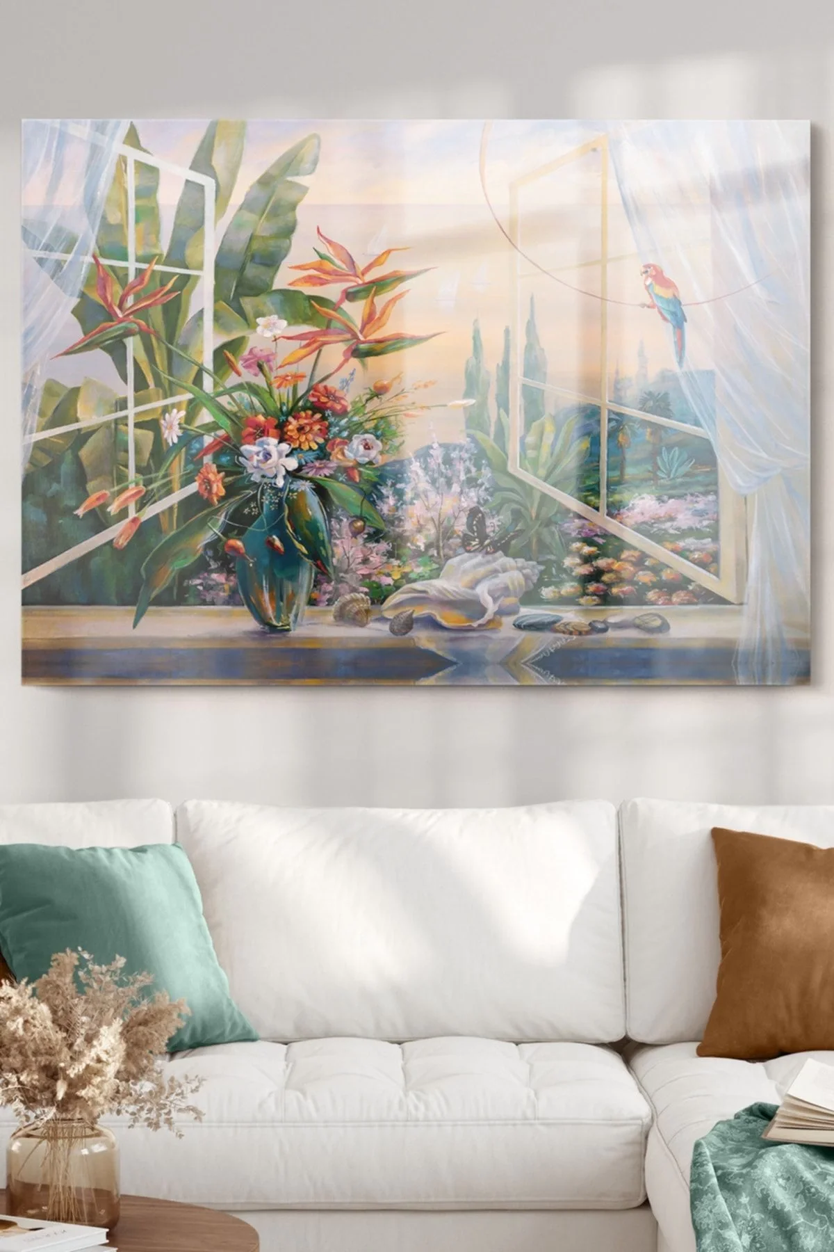 Vase with Flowers and Nature Scenery | Landscape Themed Glass Painting | 50x70cm